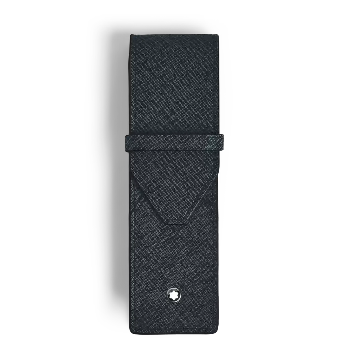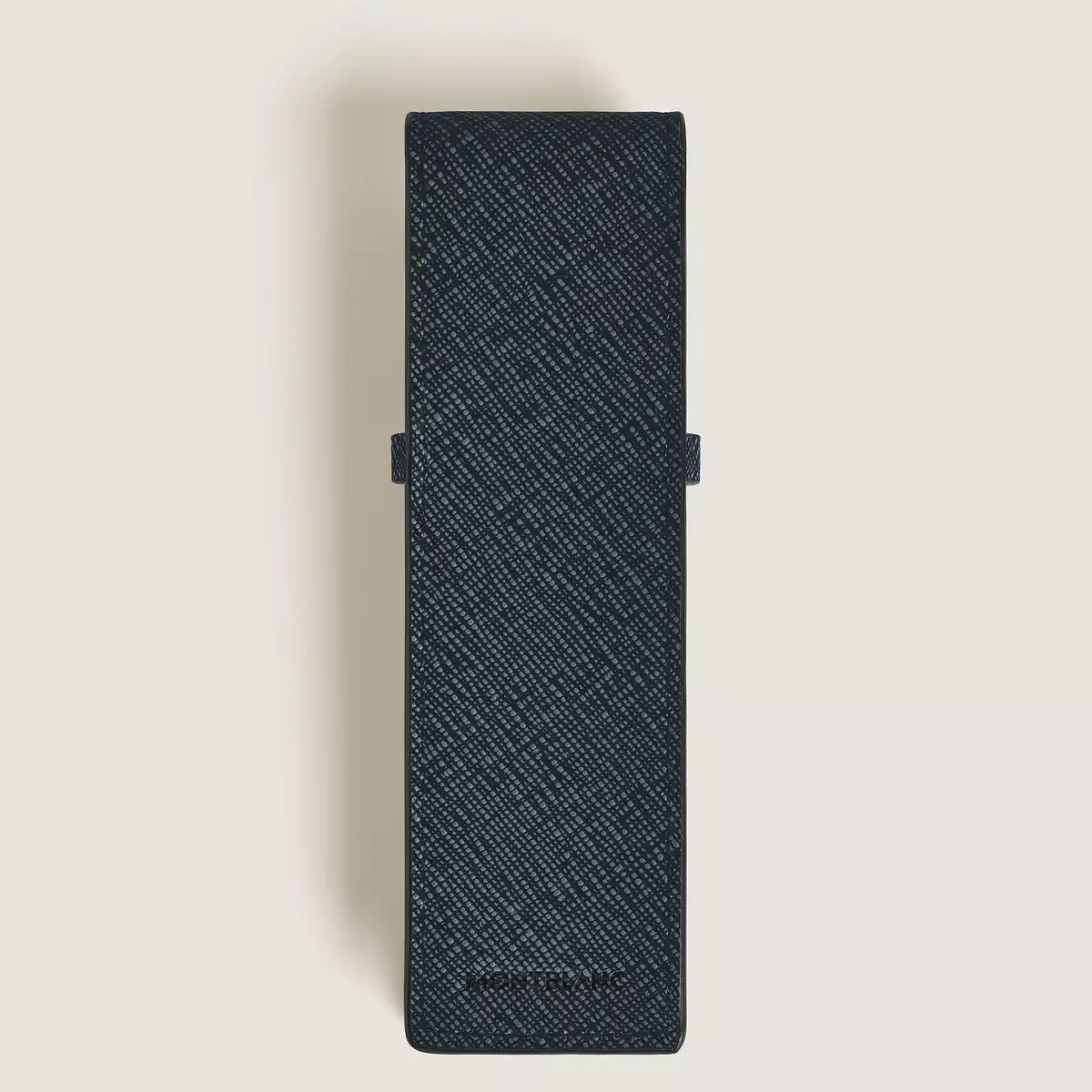 Denne pennepose er et elegant og raffineret tilbehør, der er designet til at rumme op til to skriveinstrumenter. Den er fremstillet af præget sartorial læder i en elegant tofarvet kombination af klassisk blå og sort, og dens overlappende silhuet er inspireret af formen på en konvolut, hvilket er en hyldest til skrivekulturen.
