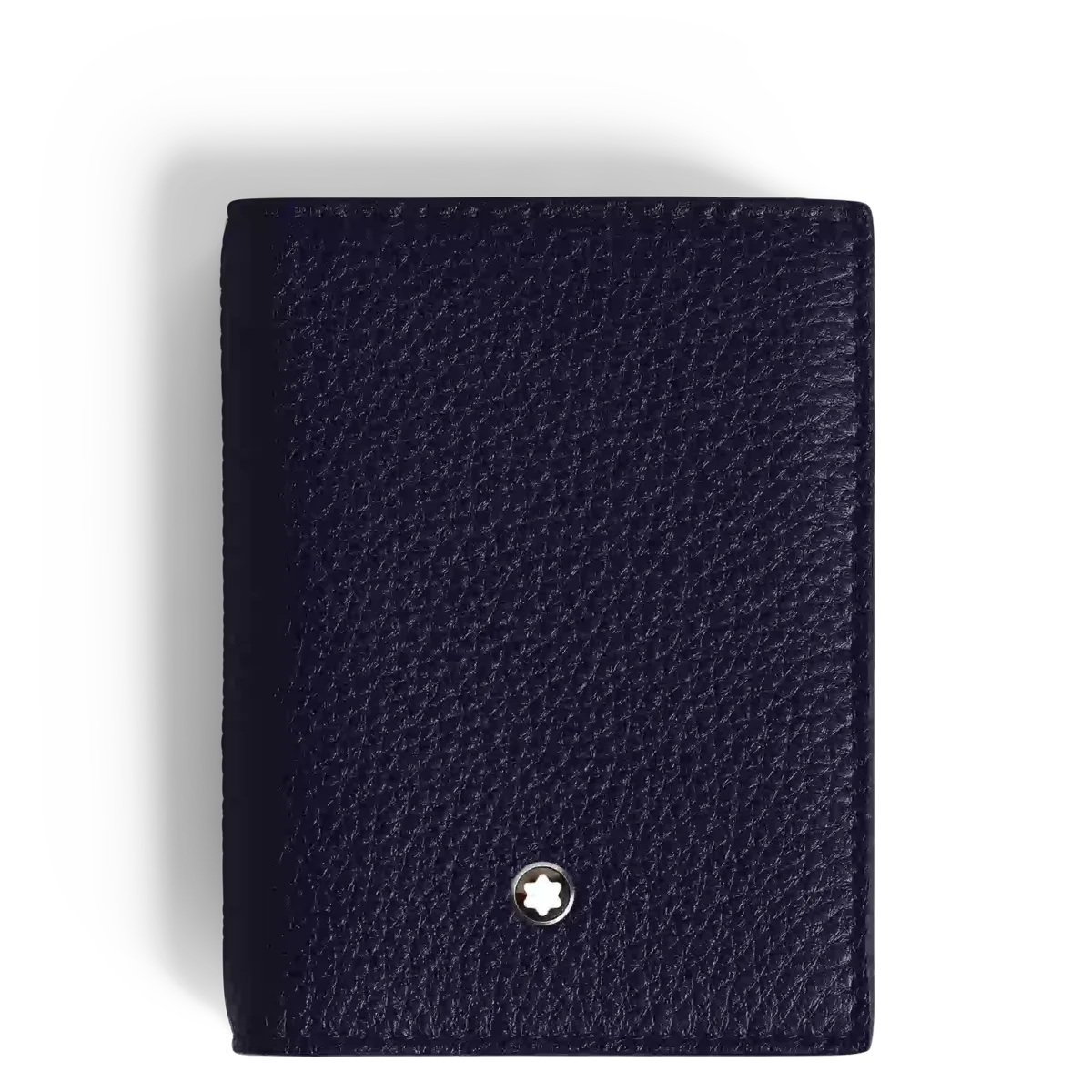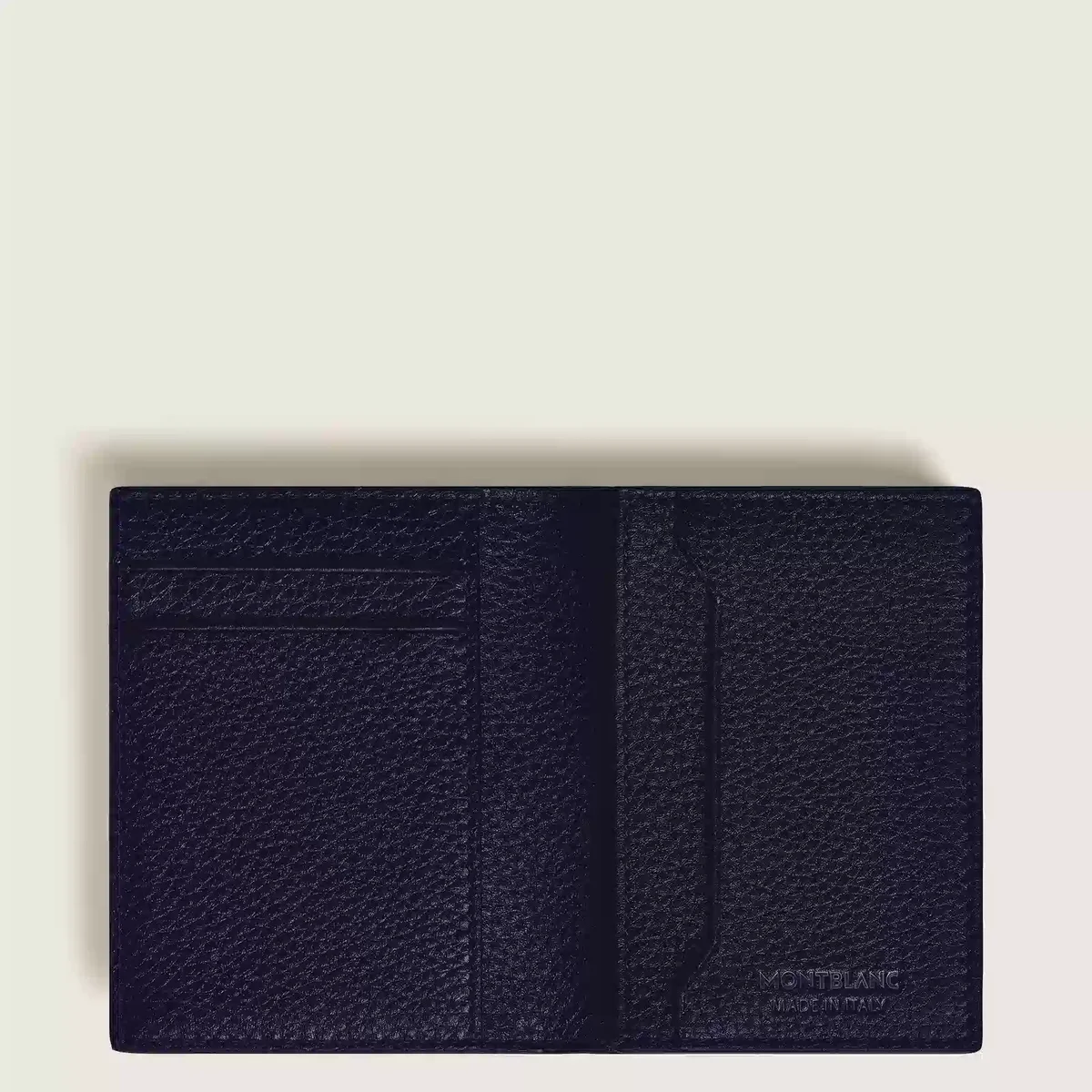 Denne lommevenlige kortholder er omhyggeligt fremstillet i luksuriøst, blødt kornet læder i midnatsblå og er både elegant og funktionel. Den har plads til flere visitkort og fire kreditkort og er prydet med det elegante Montblanc-emblem på forsiden.
