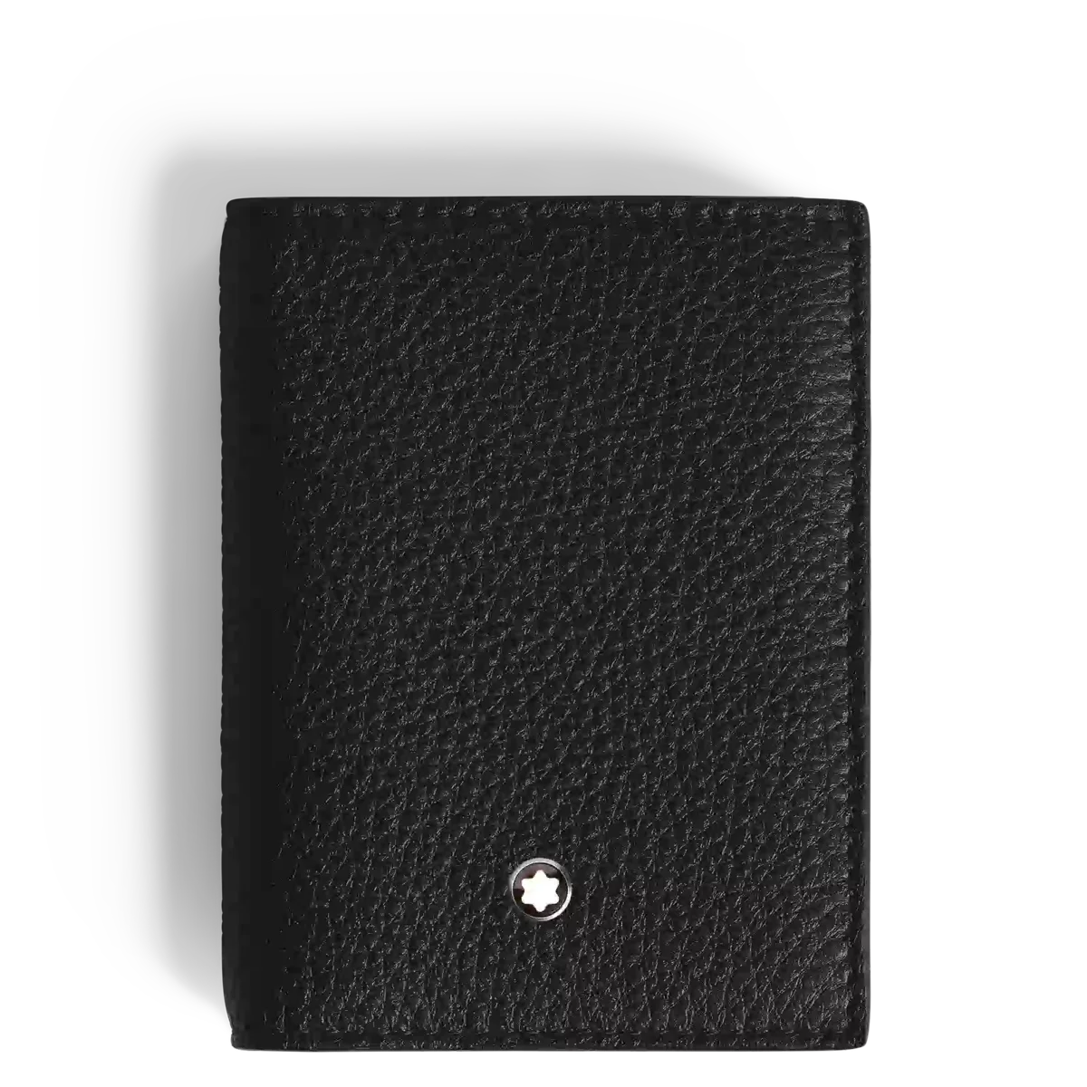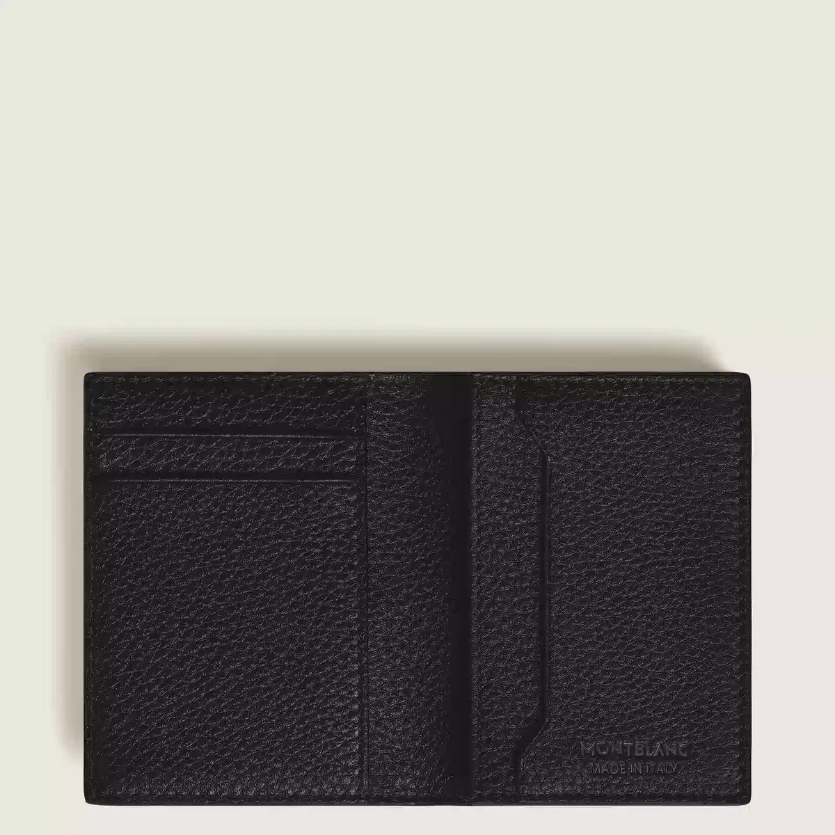 Denne lommevenlige kortholder er omhyggeligt fremstillet i luksuriøst sort blødt kornet læder og er både elegant og funktionel. Den har plads til flere visitkort og fire kreditkort og er prydet med det elegante Montblanc-emblem på forsiden.