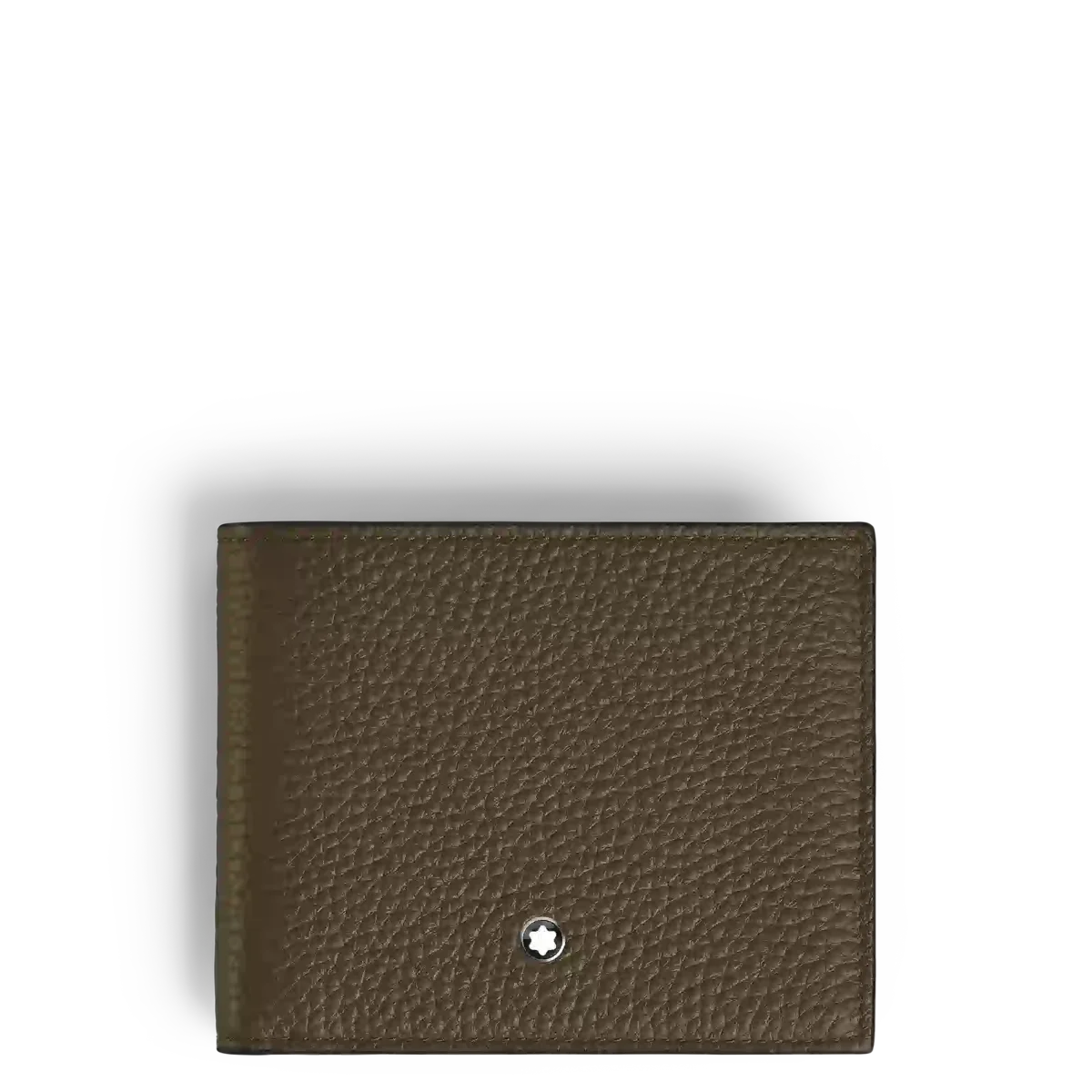 Denne kompakte læderpung kombinerer diskret elegance med praktisk anvendelighed i hverdagen. Den har en klaplomme til mønter, fire kreditkortlommer, to rum til sedler, en møntlomme og en ekstra lomme til kvitteringer. Den er fremstillet af blødt kalveskind i khaki i høj kvalitet og er afsluttet med det ikoniske Montblanc-emblem, hvilket gør den til et raffineret og funktionelt tilbehør.