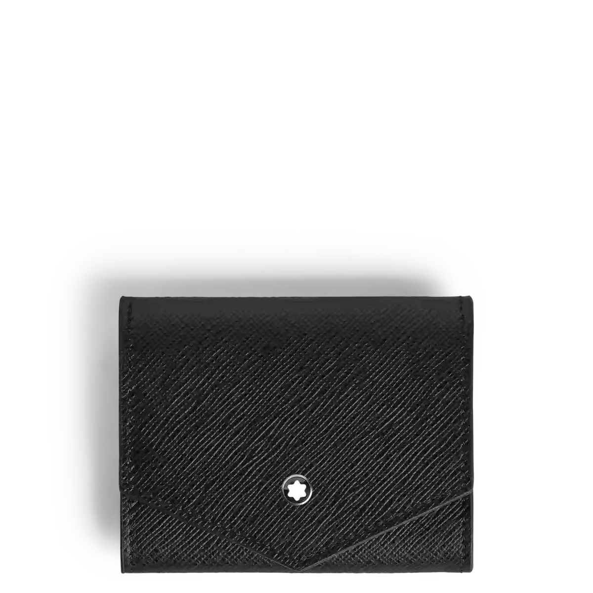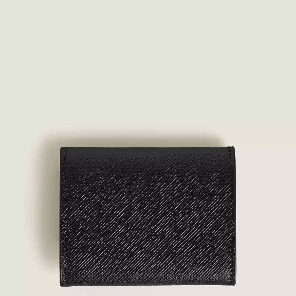 Denne elegante og kompakte møntpung er fremstillet af sort præget skræddersyet læder. Den har et rummeligt rum til mønter og er designet til at passe diskret i lommen.
