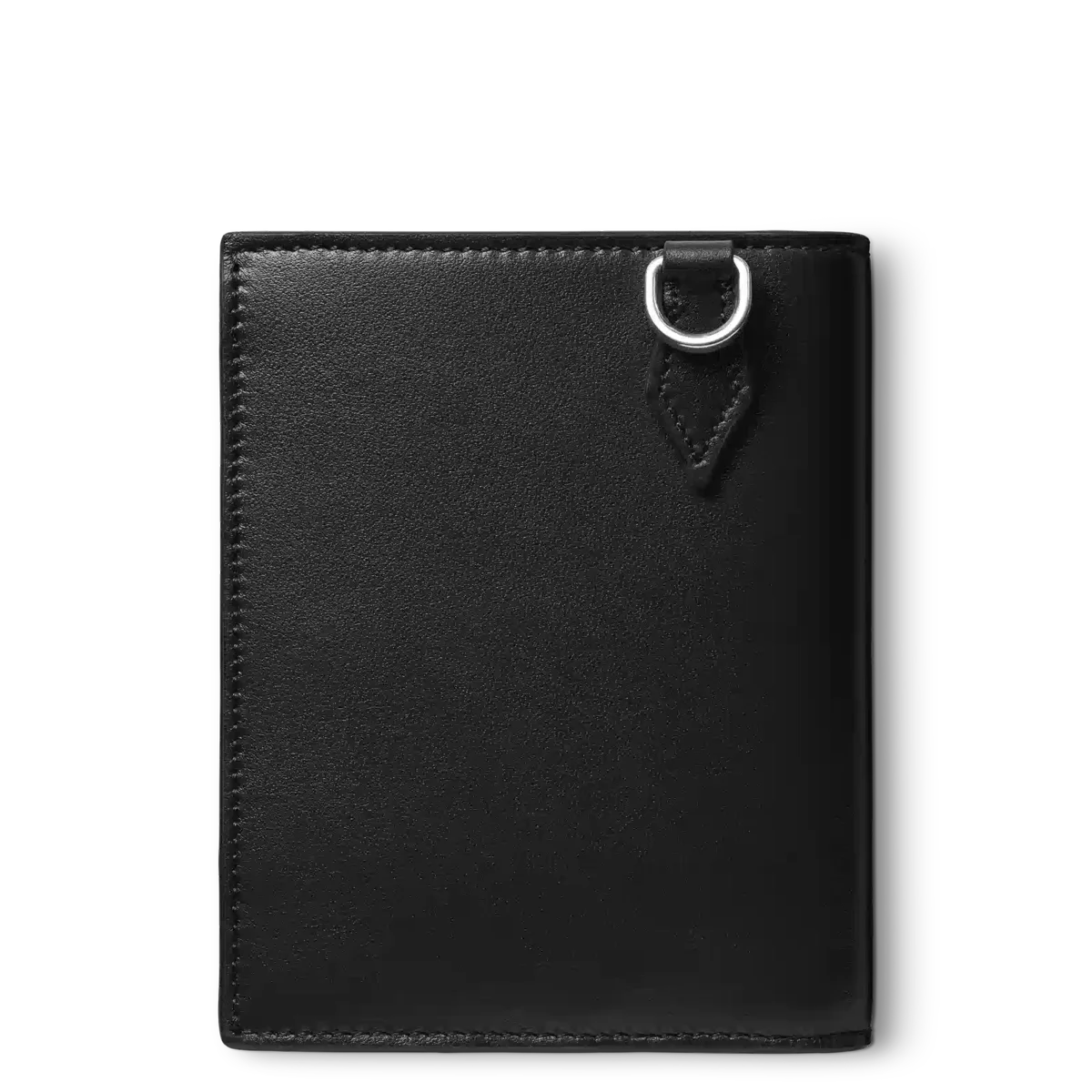 Meisterstück Compact Wallet med seks kortlommer er fremstillet af nyt, dybt skinnende sort læder. Det nye, rene geometriske indre design fremhæver funktionaliteten med flere kortlommer og lommer til kontanter og kvitteringer. Denne tegnebog kan bæres komfortabelt med en halsrem (sælges separat) eller placeres i lommen.
