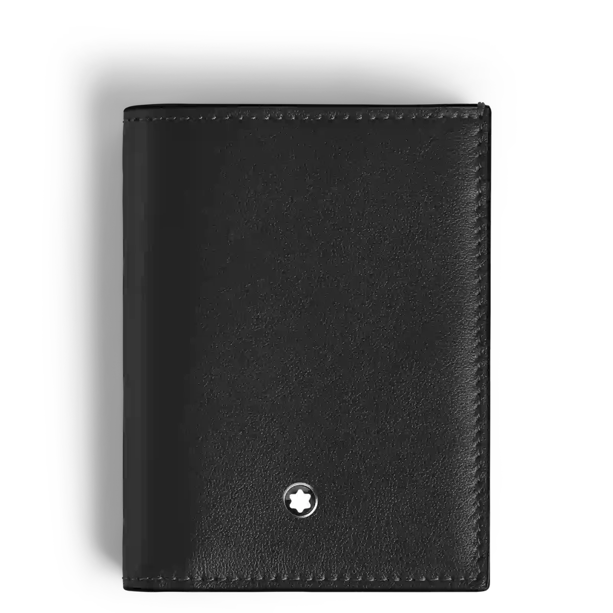 Denne kompakte og elegante, lette tegnebog er den perfekte ledsager til både arbejde og aftenudflugter. Dette klassiske bifold-design har fire dedikerede kreditkortlommer, et rum til sedler og fire ekstra lommer til ekstra opbevaring. Den er fremstillet af blødt sort kalveskind og er afsluttet med det ikoniske Montblanc-emblem på forsiden.