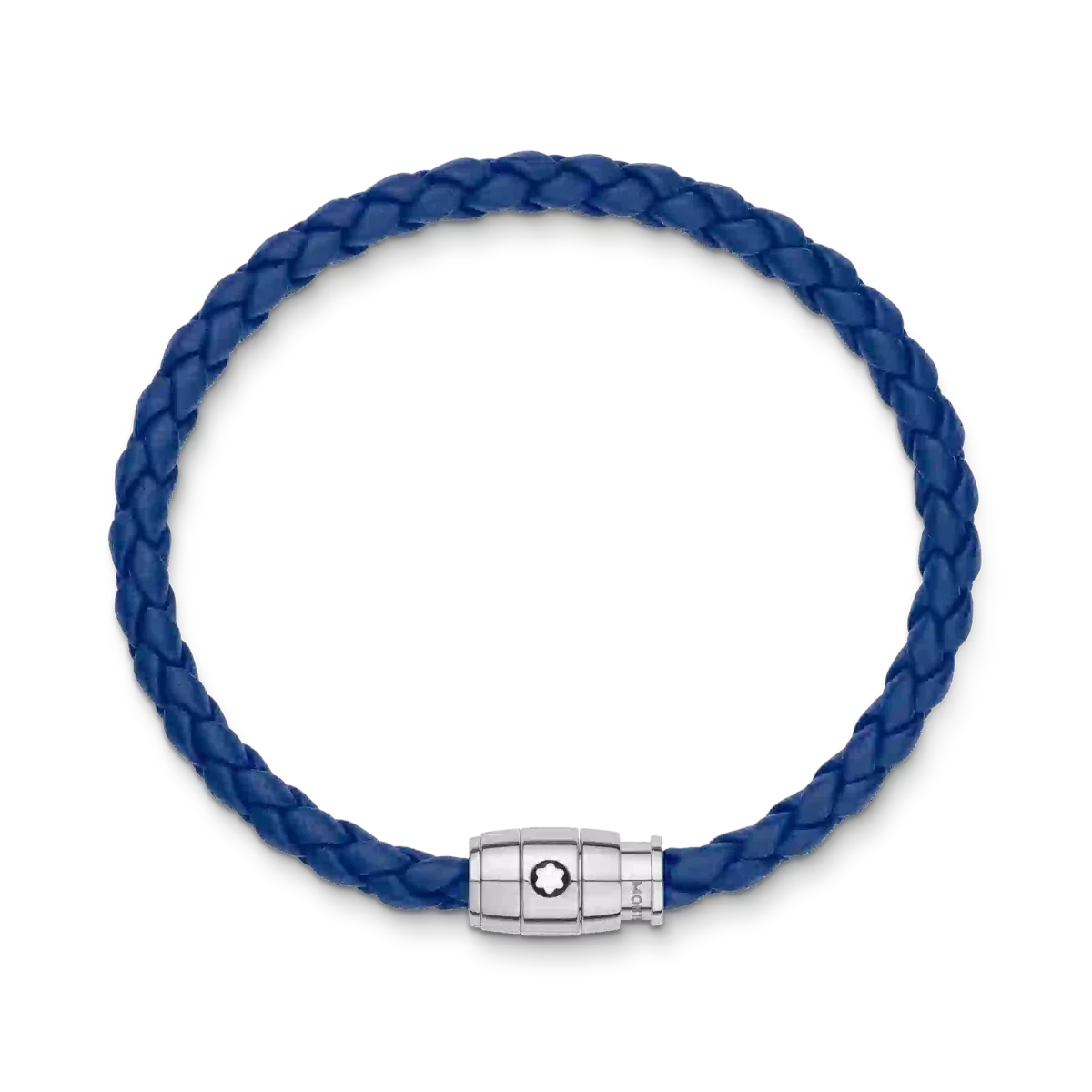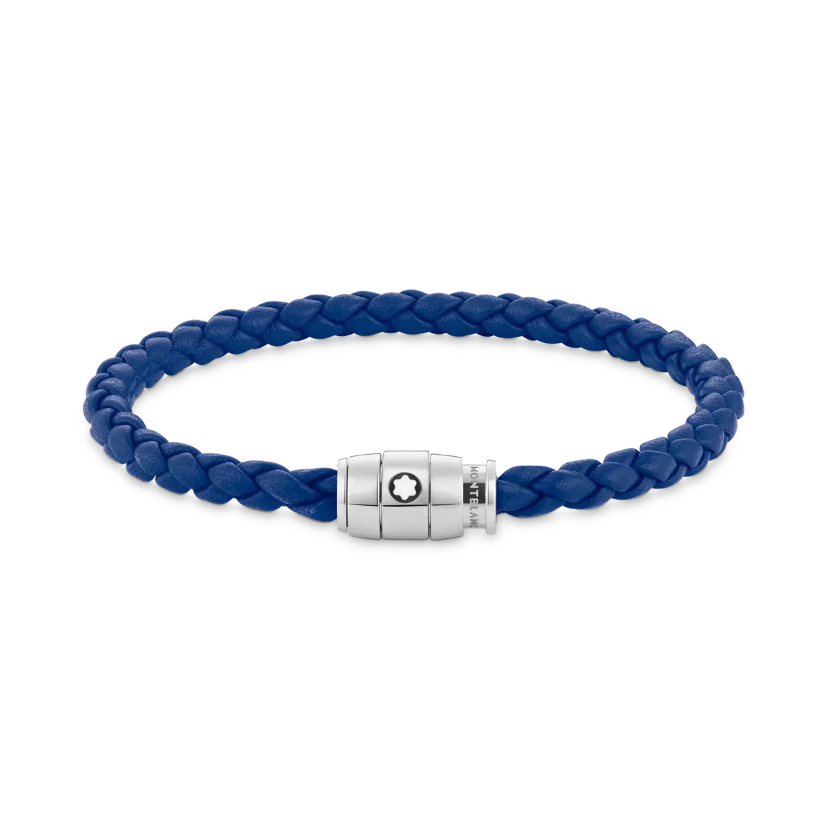 Smykket, der er vævet af blåt læder, har en lås af poleret rustfrit stål med en ring i stål med Montblanc-emblemet.
