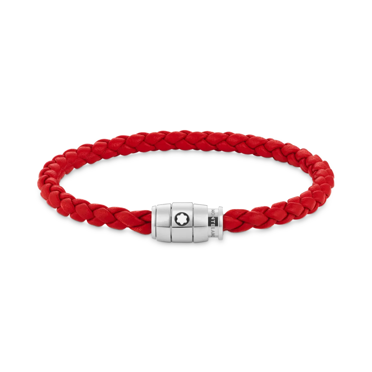 Smykket, der er vævet af rødt læder, har en lås af poleret rustfrit stål med en ring i stål med Montblanc-emblemet.
