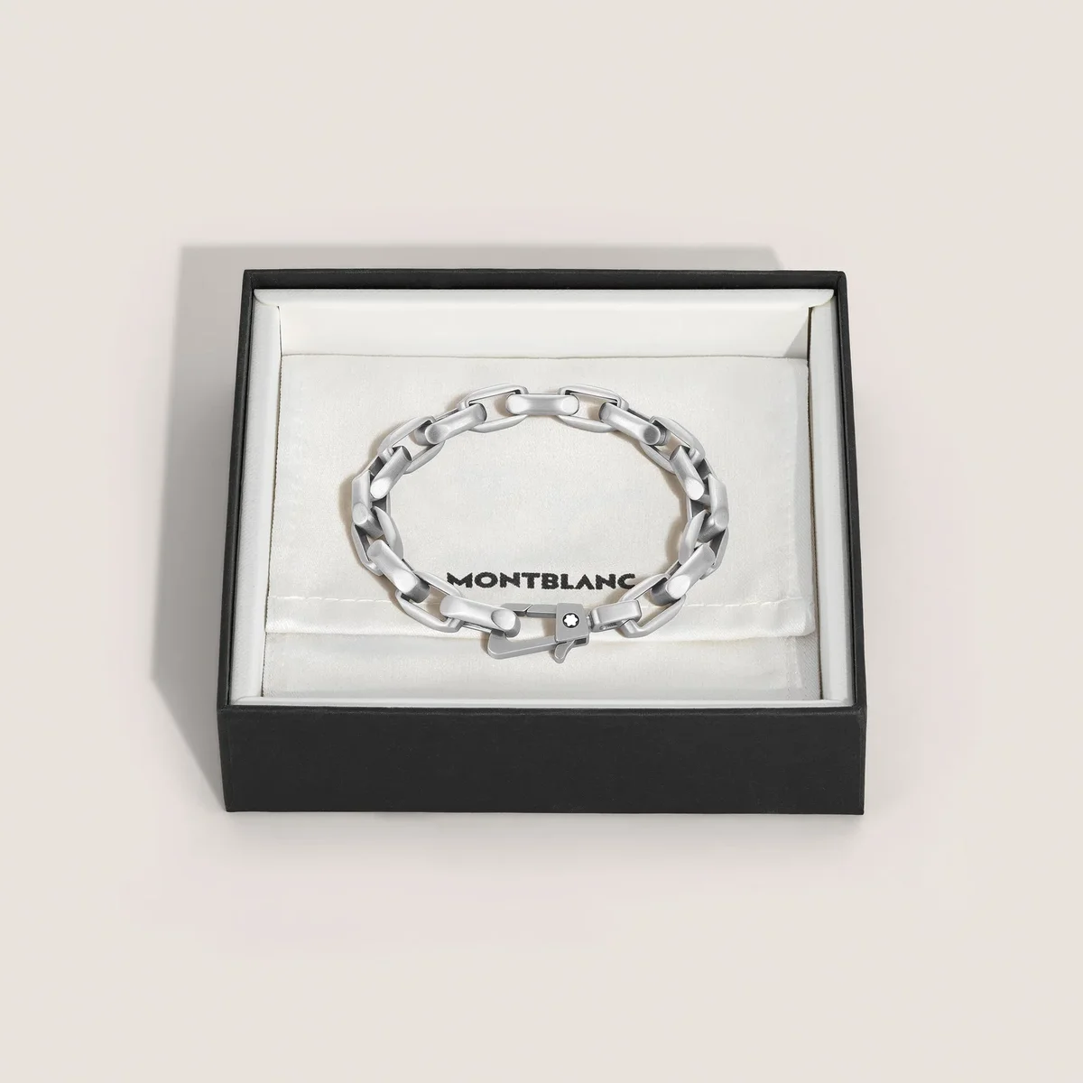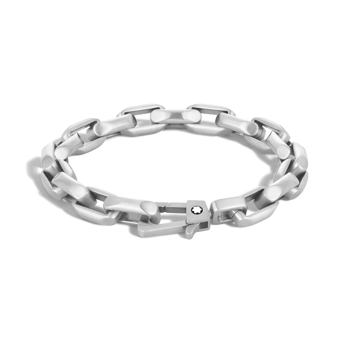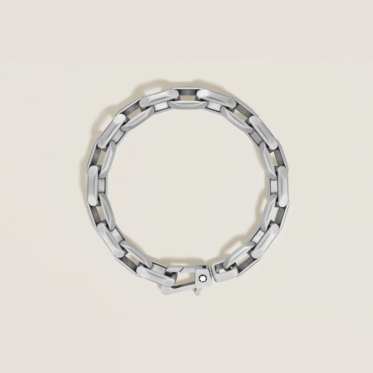 Meisterstück-armbånd i stål med ottekantet kæde, lukningen er prydet med Montblanc-emblemet.