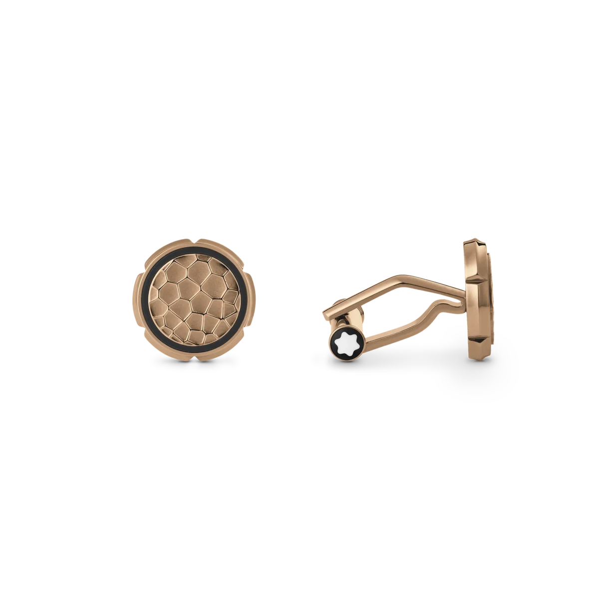 Manchetknapper i rustfrit stål med PVD-belægning som hyldest til Gustav Klimt med martelet-mønster.