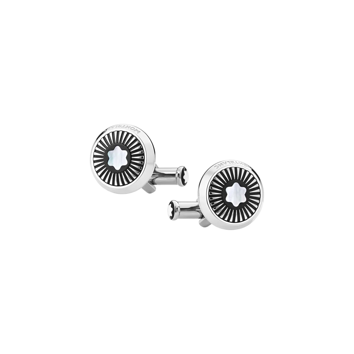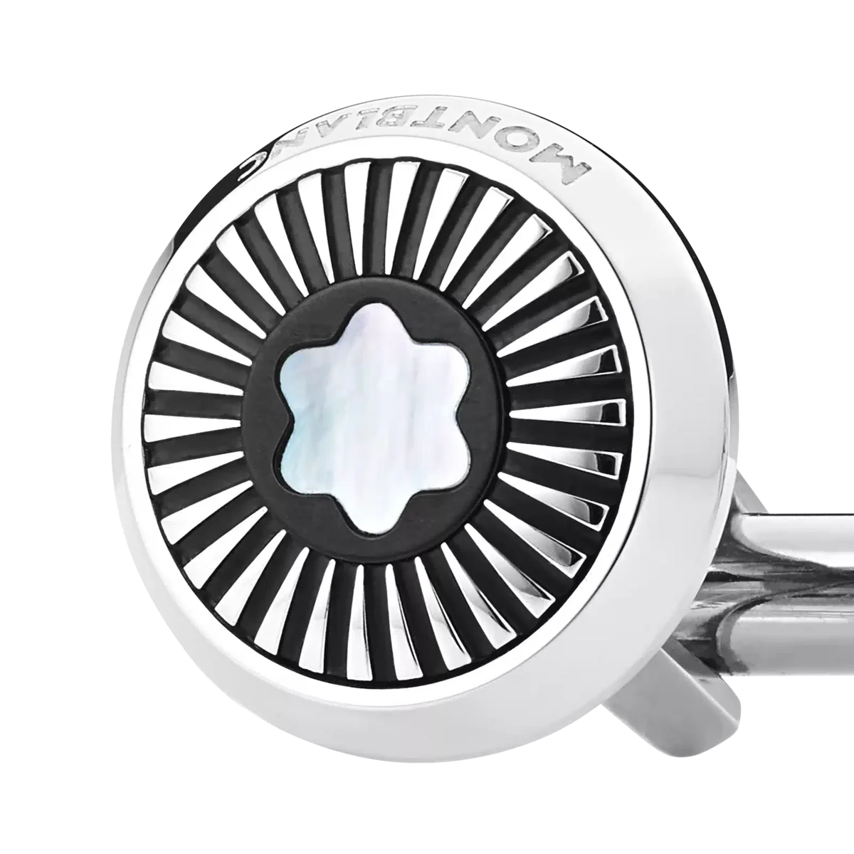 De runde Montblanc Star manchetknapper i rustfrit stål med strålemønster og perlemor-snebold-emblem er inspireret af Maison’s koder. En kollektion, der præsenterer Montblanc-emblemet i forskellige fortolkninger. Identifikationsnummer: MB123809 Fysisk vægt: 10 g Eksportabel juridisk meddelelse: Emblemerne centreres manuelt, et for et, af vores håndværkere. Emblemet er placeret centralt, men den manuelle trykoperation med maskinen kan flytte emblemet. Dette er en egenskab, der ikke kompromitterer produktets æstetik og kan ikke accepteres som reklamation i henhold til vores politik.