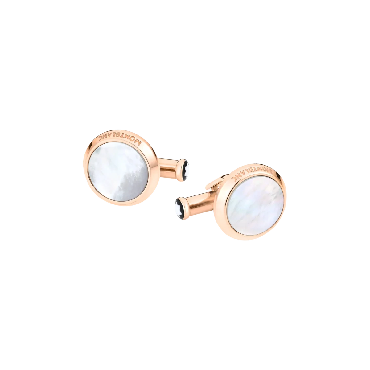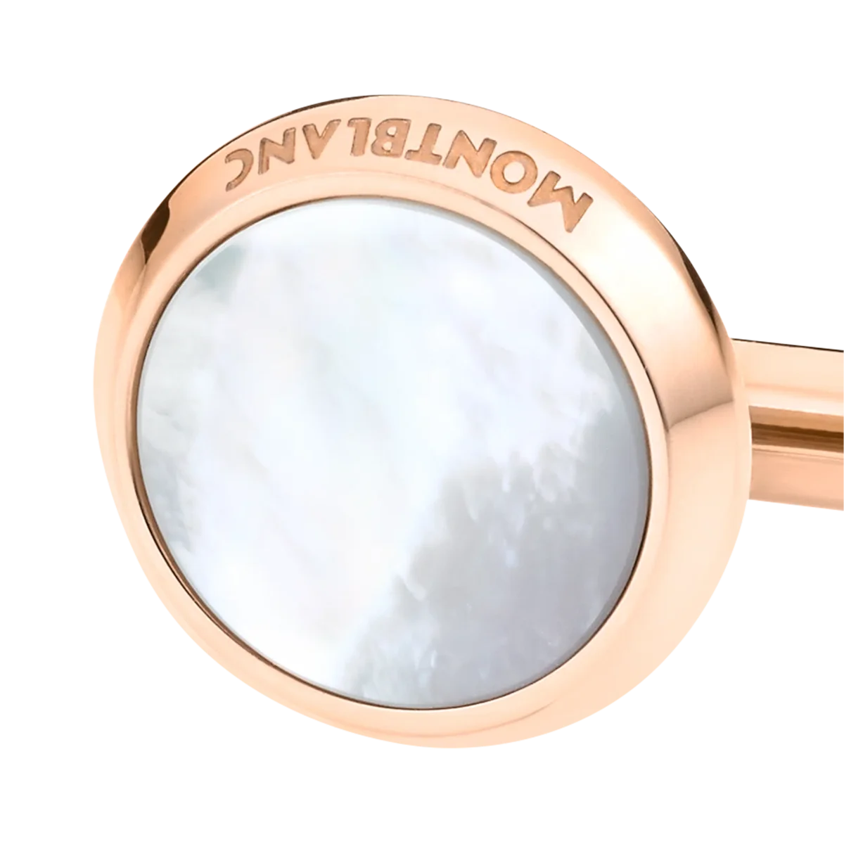 Meisterstück manchetknapper hylder en tidløs stil. Med inspiration fra Montblanc Meisterstück-skriveinstrumentet skaber den tidløse runde form i rustfrit stål med en rosaguldfarvet PVD-finish og indlæg af perlemor et smykke med et kraftfuldt Montblanc-signatur.