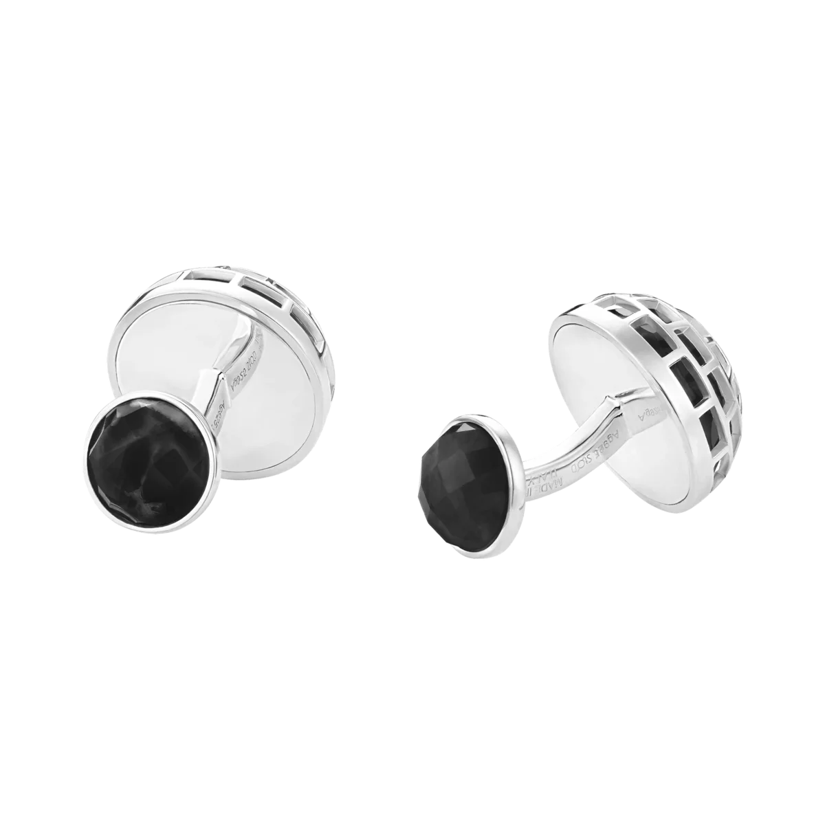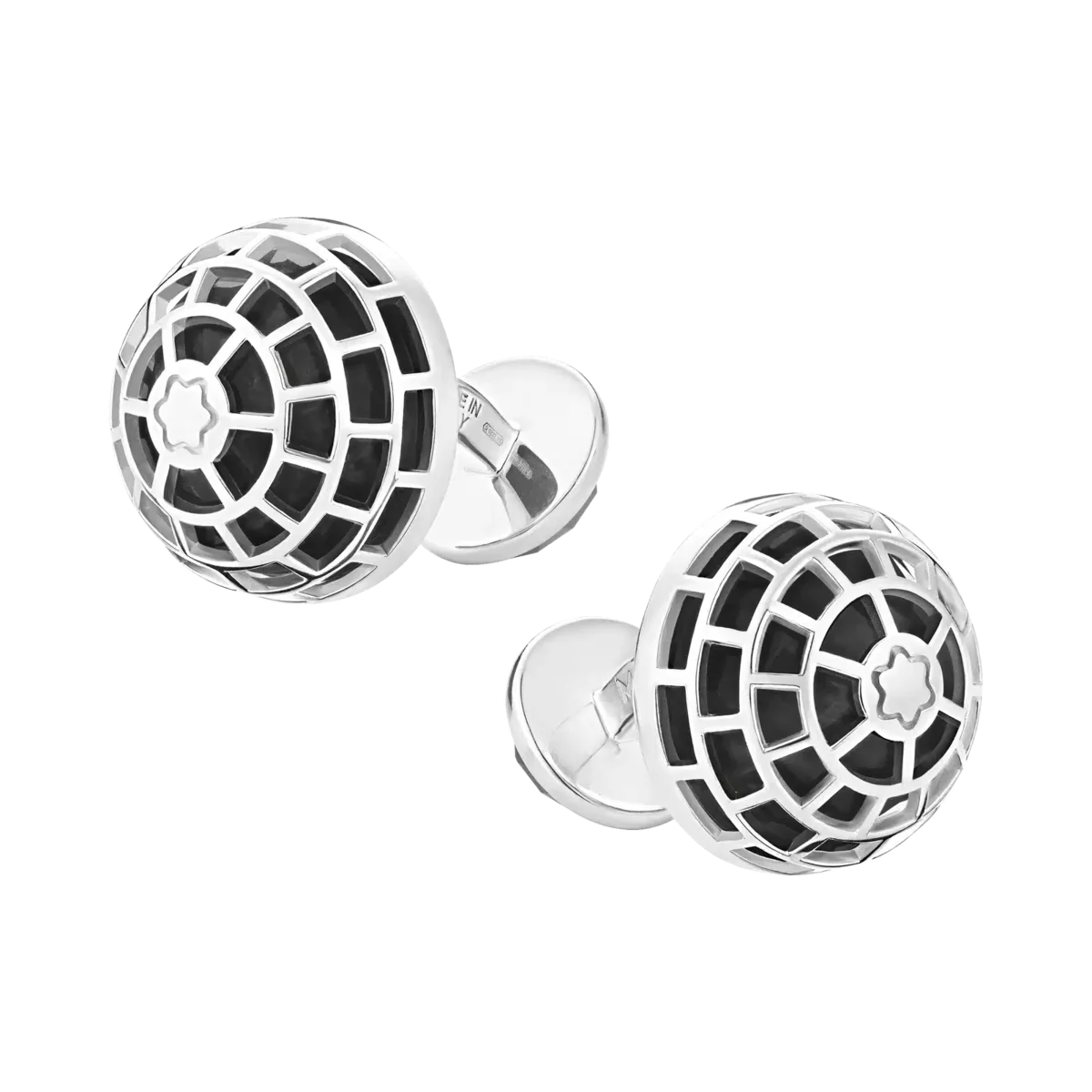 Disse Montblanc Meisterstück manchetknapper er fremstillet af sølv med en sort onyxsten indfattet i en moderne kuppelform og suppleret med det indgraverede ikoniske Montblanc-emblem. Bagsiden af smykket er også dekoreret med en rund onyxsten.