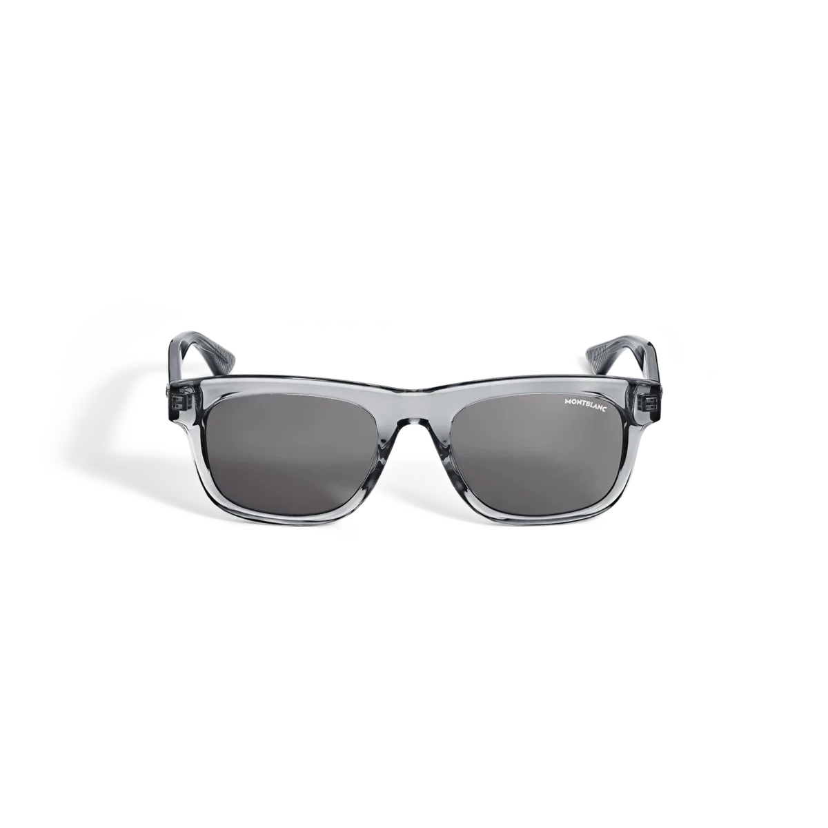 Disse solbriller i firkantet stil har en gråfarvet acetatramme og grå glas. Montblanc-emblemet er indkapslet i brillestangens design. Montblanc-logoet er indgraveret på venstre glas, og det skridsikre mønster er indgraveret på indersiden af brillestangens ender for at øge komforten.