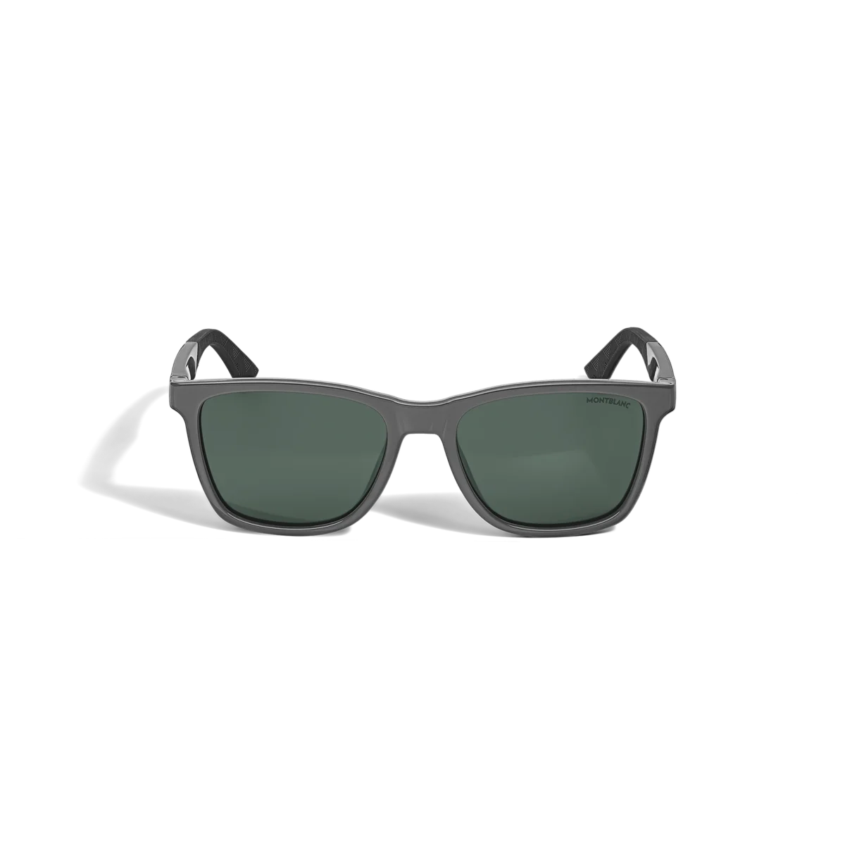 Disse solbriller i firkantet stil har en gråfarvet sprøjtestøbt stel og grå glas. Montblanc-emblemet er indkapslet i brillestængernes design, og brillestængernes ender har gummiender med Montblanc Extreme 3.0-mønsteret for at give et sporty look. Montblanc-logoet er indgraveret på solbrillernes venstre glas.