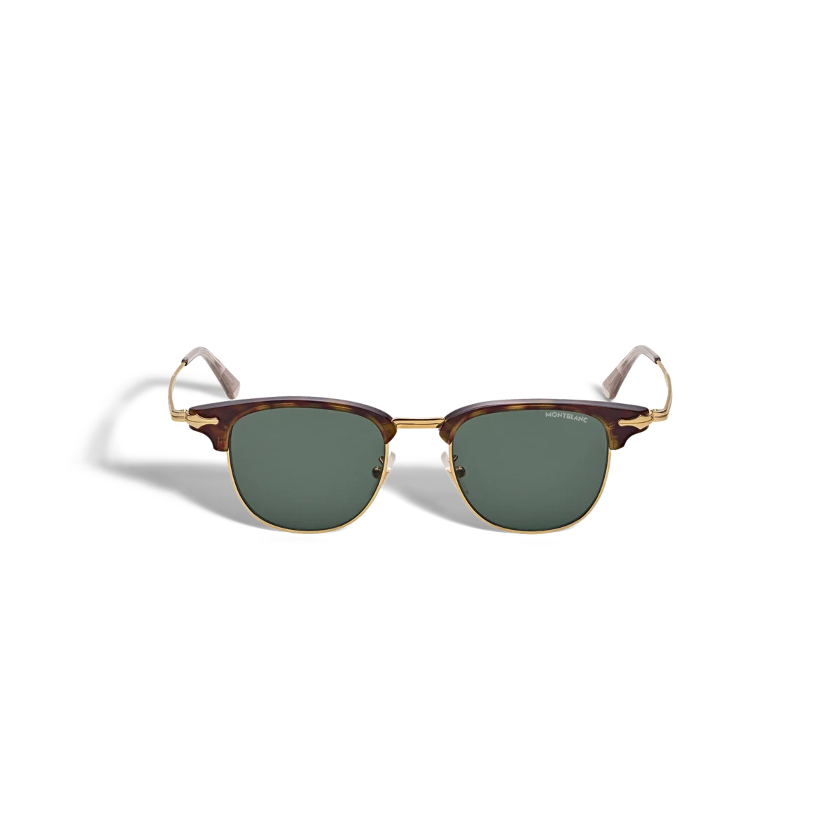 Disse solbriller i rektangulær stil har en guldfarvet metalramme og grønne glas. Inspireret af pennenes design er der en dekorativ pen-detalje på metalstelets design. Montblanc-logoet er indgraveret på venstre glas, og det skridsikre mønster er indgraveret på indersiden af stelets ender for at øge komforten. Identifikationsnummer: MB134474