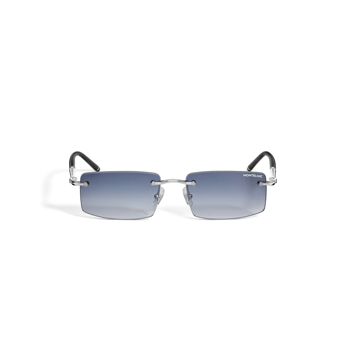 Disse solbriller i firkantet stil har en sølvfarvet metalramme og blå glas. De rørformede brillestænger, der er inspireret af Meisterstück-skriveinstrumenterne, er beriget med en detalje med 3 ringe. Montblanc-logoet er indgraveret på venstre glas, og en sort emaljedetalje er indkapslet i enderne.