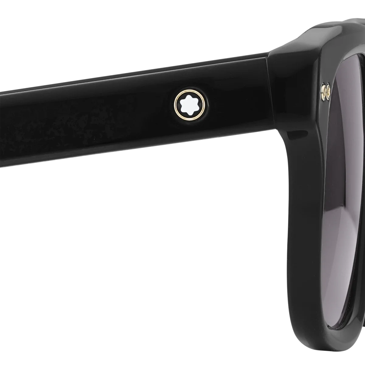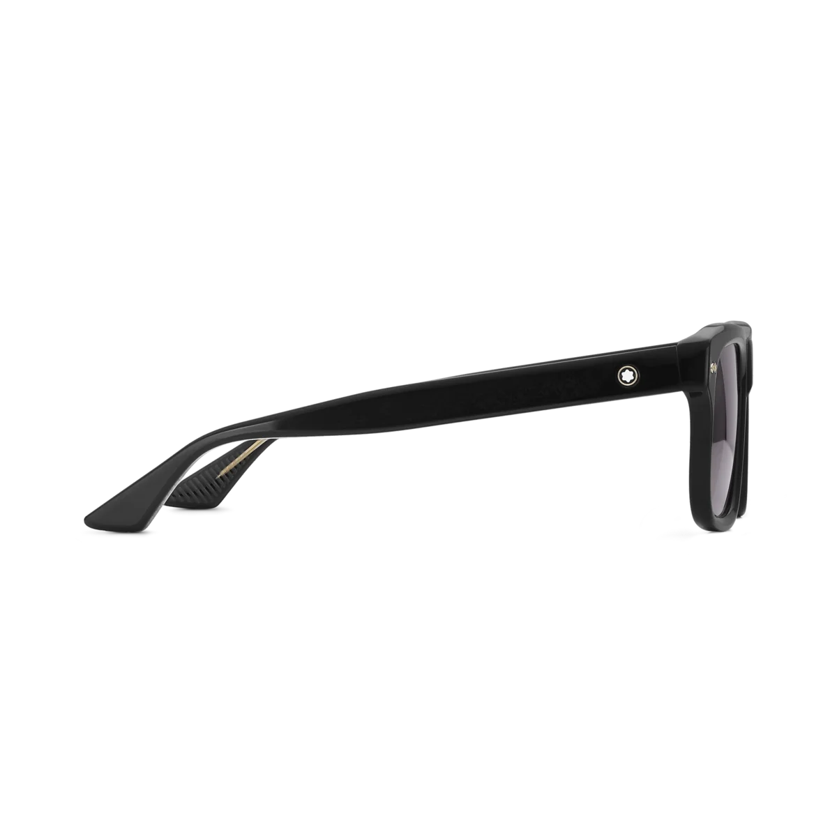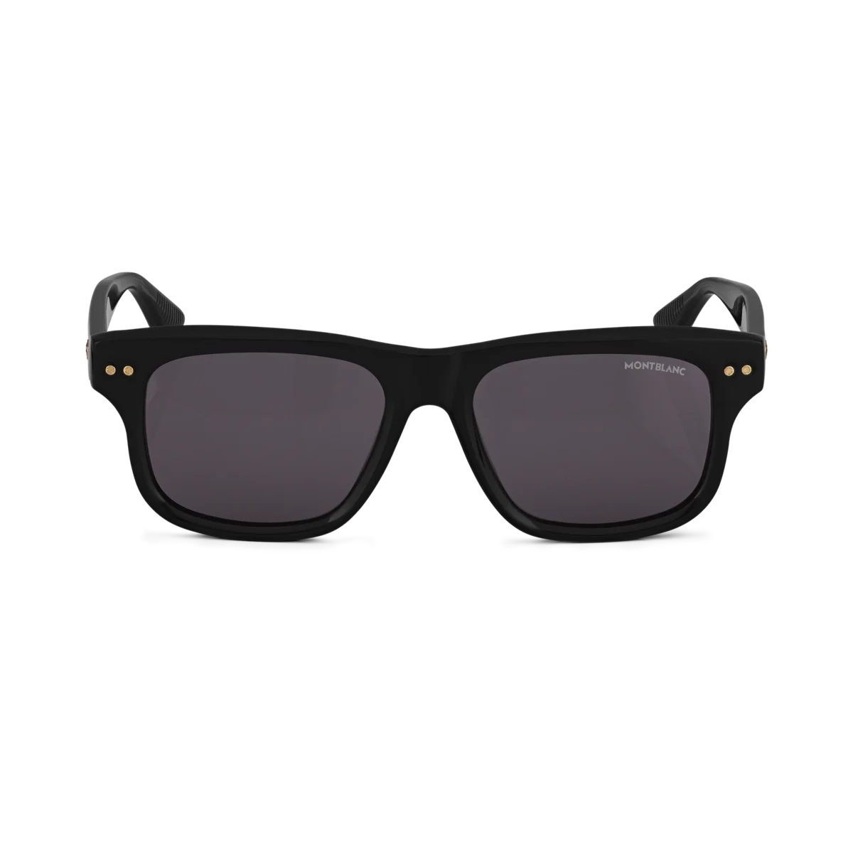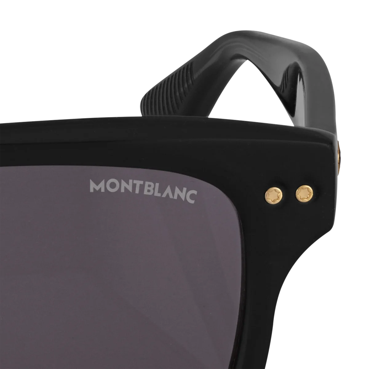 Disse rektangulære solbriller med en markant form har en sort acetatramme og røgfarvede glas. Nitterne på forsiden har en snedækket detalje, og Montblanc Extreme 3.0-mønsteret er indarbejdet i indersiden af brillestængernes design. Montblanc-emblemet er indkapslet i brillestangens design. Montblanc-logoet er indgraveret på venstre glas, og det skridsikre mønster er indgraveret på indersiden af brillestangens ender for at øge komforten.