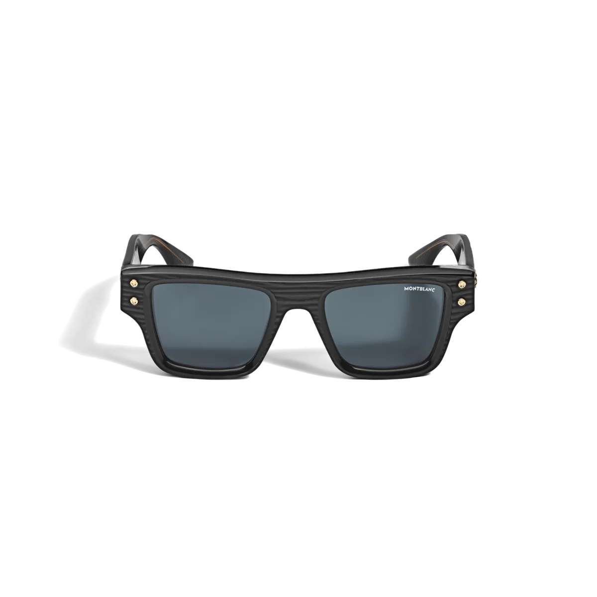 Disse solbriller i rektangulær stil og markant form har en sort acetatramme og grå glas. Nitterne på forsiden har en snedæksel-detalje, og Montblanc Extreme 3.0-mønsteret er indarbejdet i indersiden af brillestængerne. Montblanc-emblemet er indkapslet i brillestangens design. Montblanc-logoet er indgraveret på venstre glas, og der er indgraveret et skridsikkert mønster på indersiden af brillestængernes ender for at øge komforten. Identifikationsnummer: MB135574