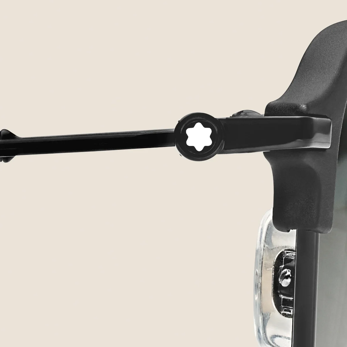 Se alle detaljer om de rektangulære solbriller med sort metalstel. Køb online i den officielle Montblanc-butik.