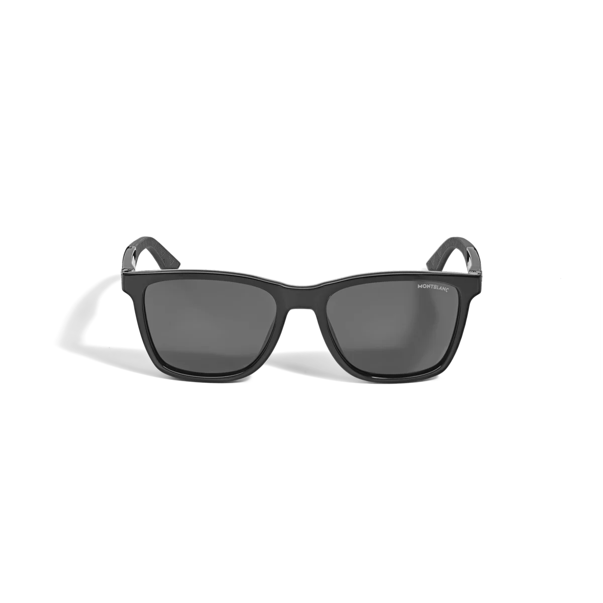 Disse solbriller i rektangulær stil har en sort sprøjtestøbt stel og grå glas. Montblanc-emblemet er indkapslet i brillestængernes design, og brillestængernes ender har gummiender med Montblanc Extreme 3.0-mønster for at give et sporty look. Montblanc-logoet er indgraveret på solbrillernes venstre glas. Identifikationsnummer: MB135561