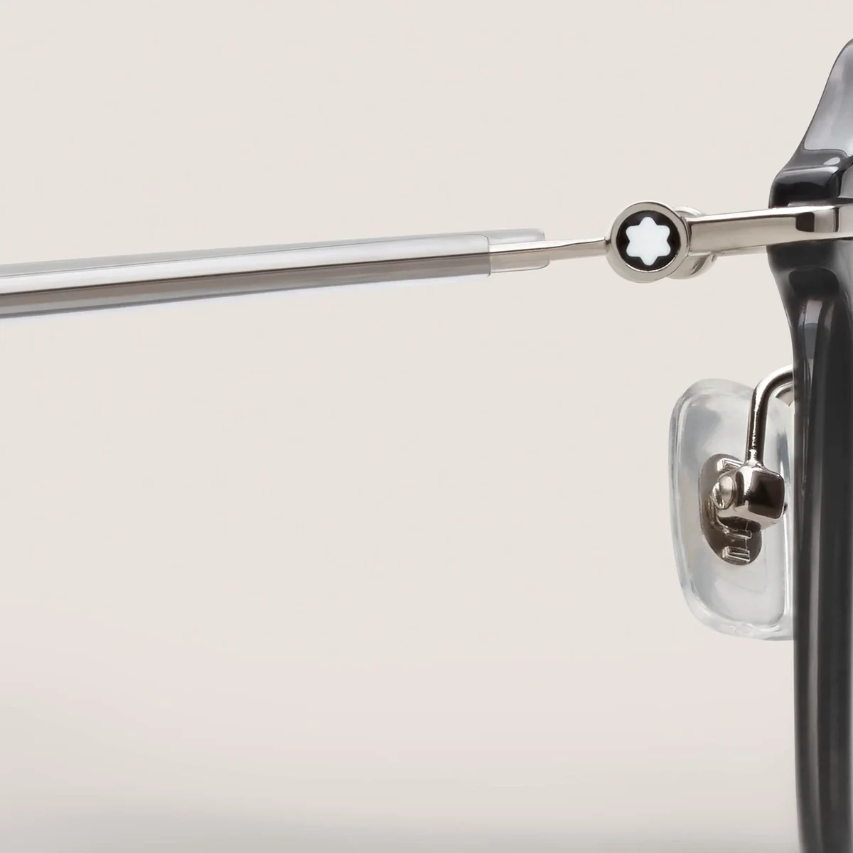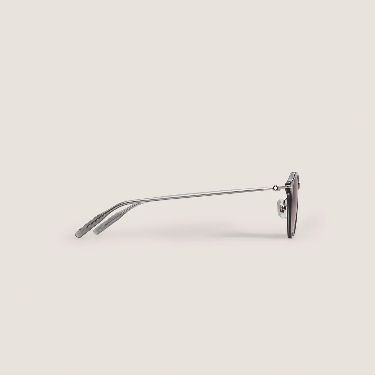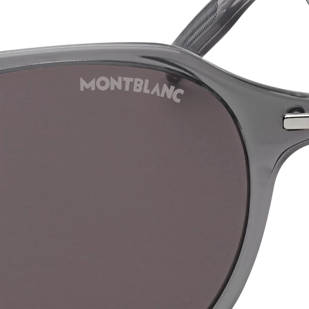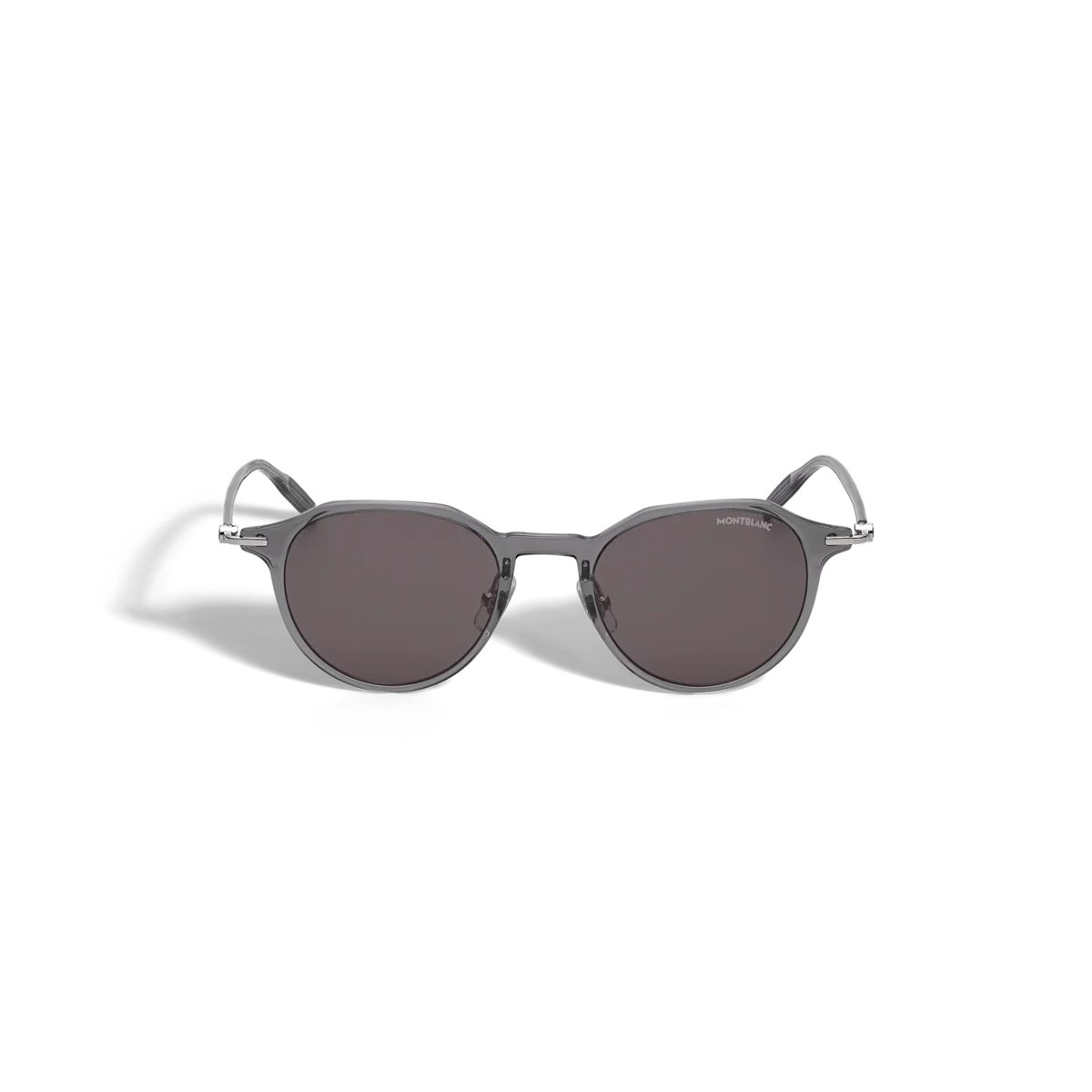 Disse solbriller i rund stil har en gråfarvet indsprøjtet ramme og grå glas. Montblanc-emblemet med snedækket bjerg er indkapslet i metalstængernes design. Montblanc-logoet er indgraveret på venstre glas, og det skridsikre mønster er indgraveret på indersiden af de gennemsigtige brillestænger for at øge komforten.