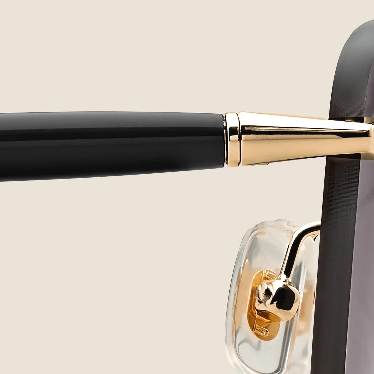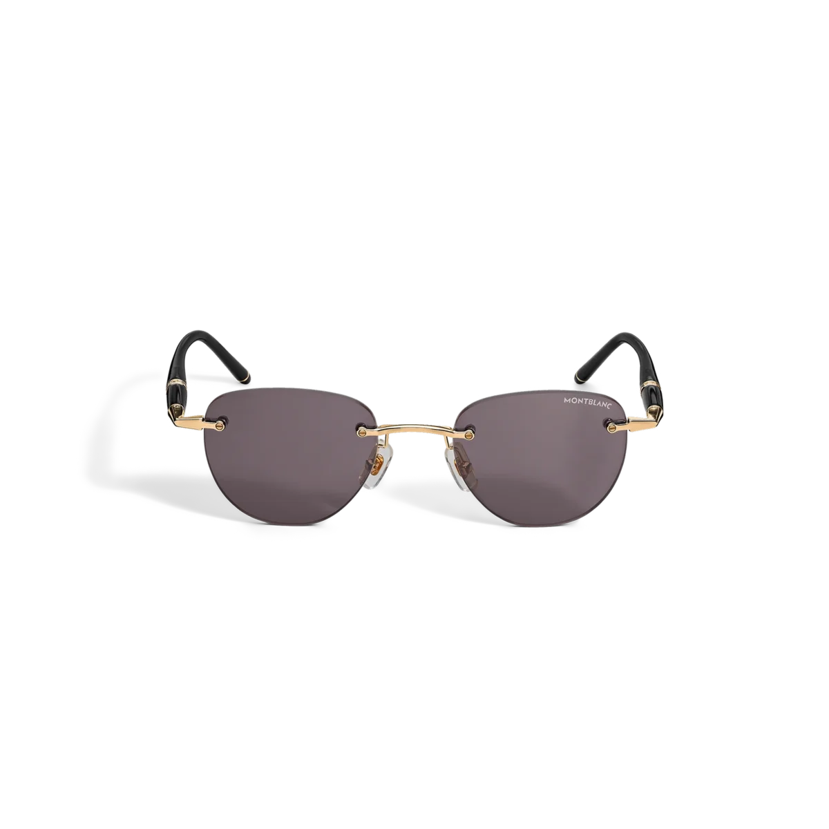 Disse randløse solbriller i rund stil har en guldfarvet metalramme og grå glas. De rørformede stænger, der er inspireret af Meisterstück-skriveinstrumenterne, er beriget med Montblanc-bogstaverne. Montblanc-logoet er indgraveret på venstre glas med laser.