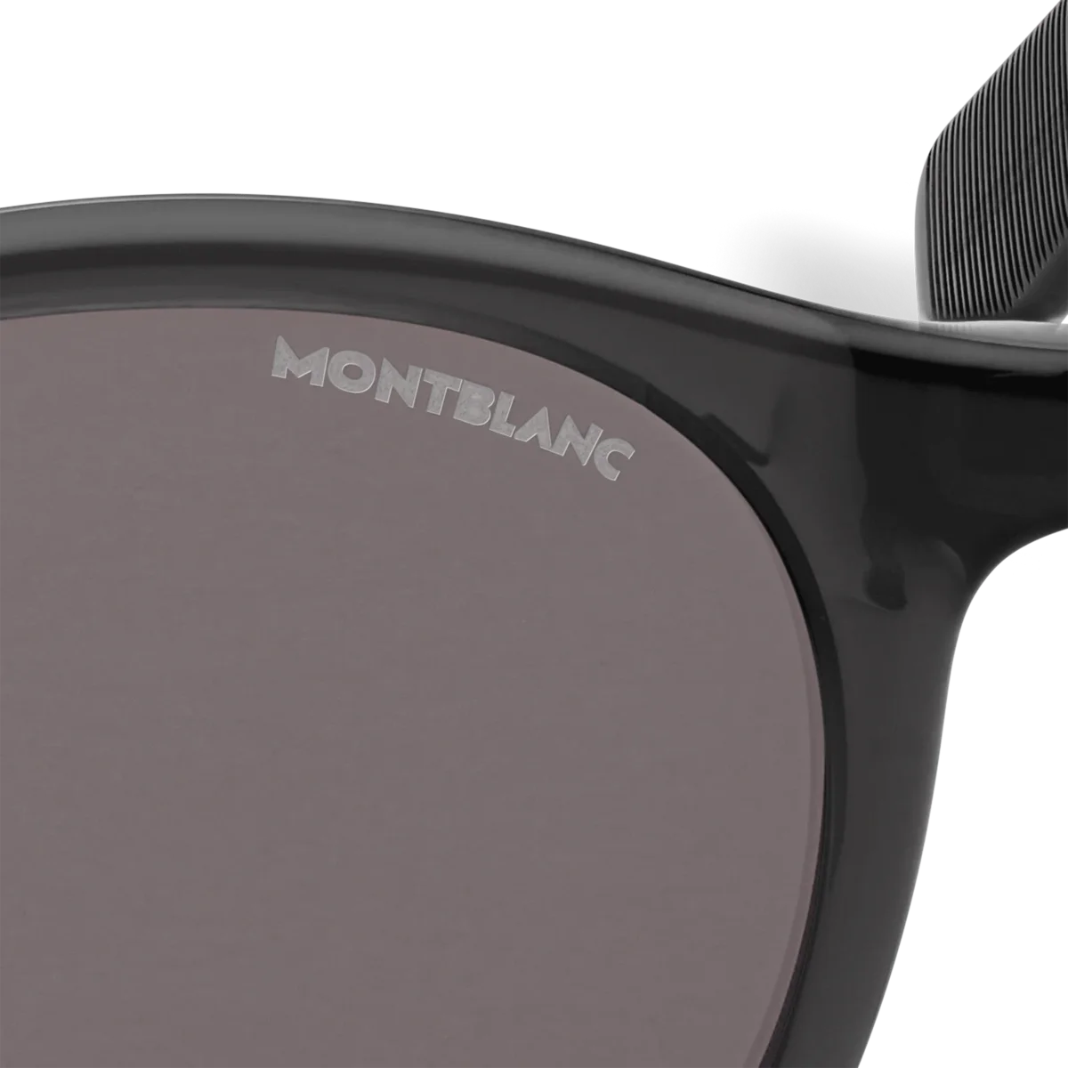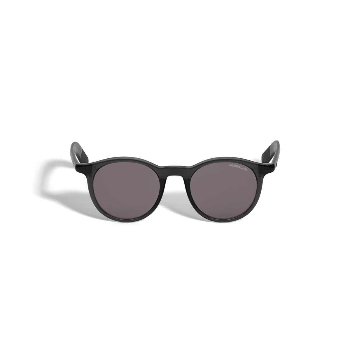 Disse solbriller i rund stil har en sort indsprøjtet acetatramme og grå glas. Montblanc-emblemet er indkapslet i brillestangens design. Montblanc-logoet er indgraveret på solbrillernes venstre glas, og det skridsikre mønster er indgraveret på indersiden af brillestængernes ender for at øge komforten.