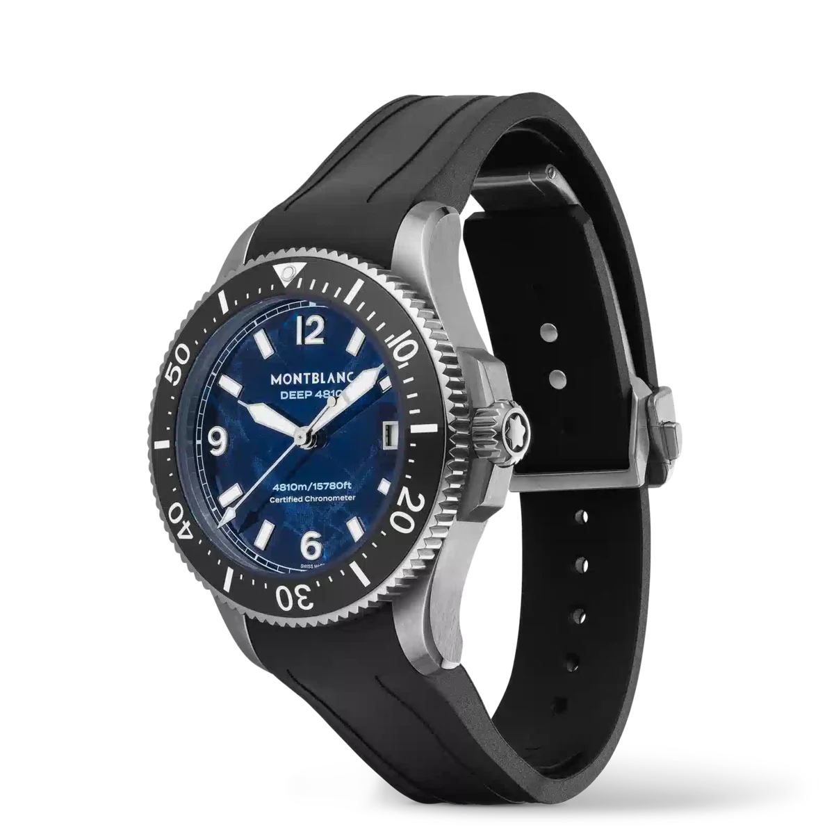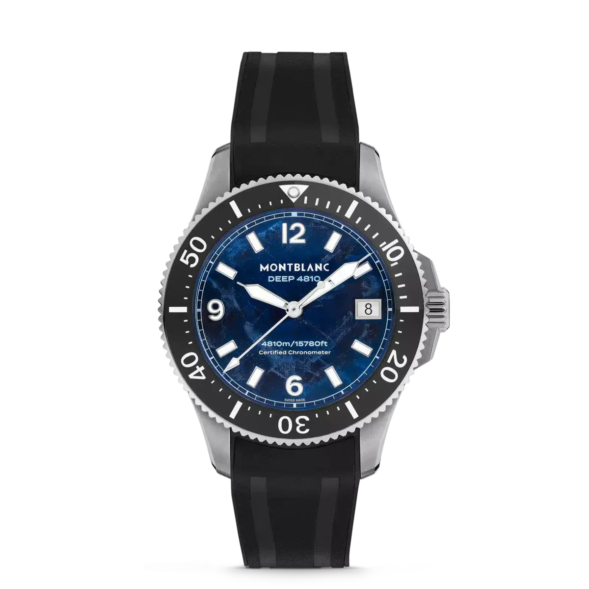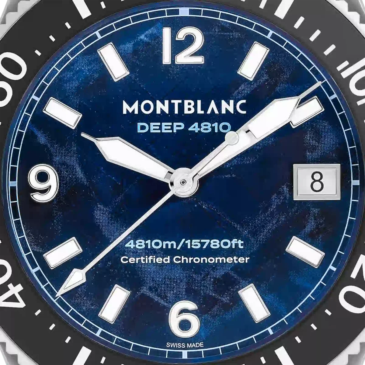Efter at have stræbt efter de største højder udforsker Montblanc nu havets univers 4810 meter under havets overflade med Montblanc Iced Sea 0 Oxygen Deep 4810. Urskiven med gletschermønster er inspireret af Mer de Glace – Havet af is – den største gletscher i Mont-Blanc-massivet. Teksturen er opnået ved hjælp af en næsten glemt, gammel teknik kaldet gratté-boisé. Dette dykkerur er indkapslet i et 43 mm titaniumhus, der er fuldstændig fri for ilt, med et skjold, der beskytter den skruede krone, og har en bagkasse prydet med en 3D-gravering af det syn, dykkere ser, når de dykker under isen. Uret drives af Montblancs COSC-certificerede, automatiske MB 29.29-urværk med ca. fem dages gangreserve og overholder ISO 6425-normen for dykning. Det er vandtæt ned til 4810 meter. Identifikationsnummer: MB133268