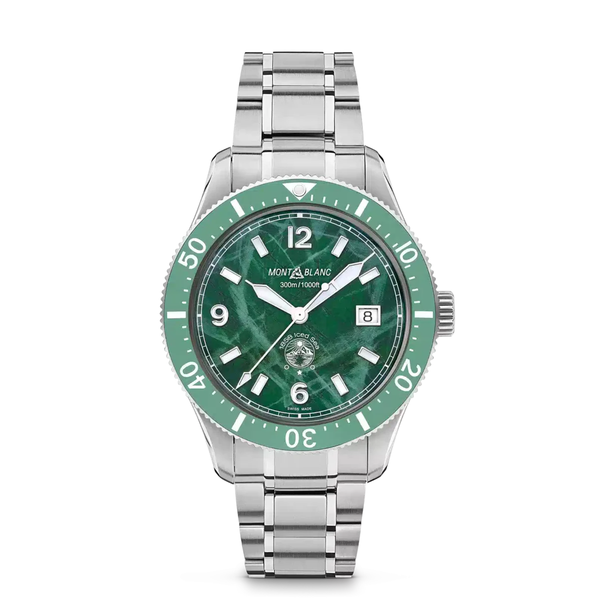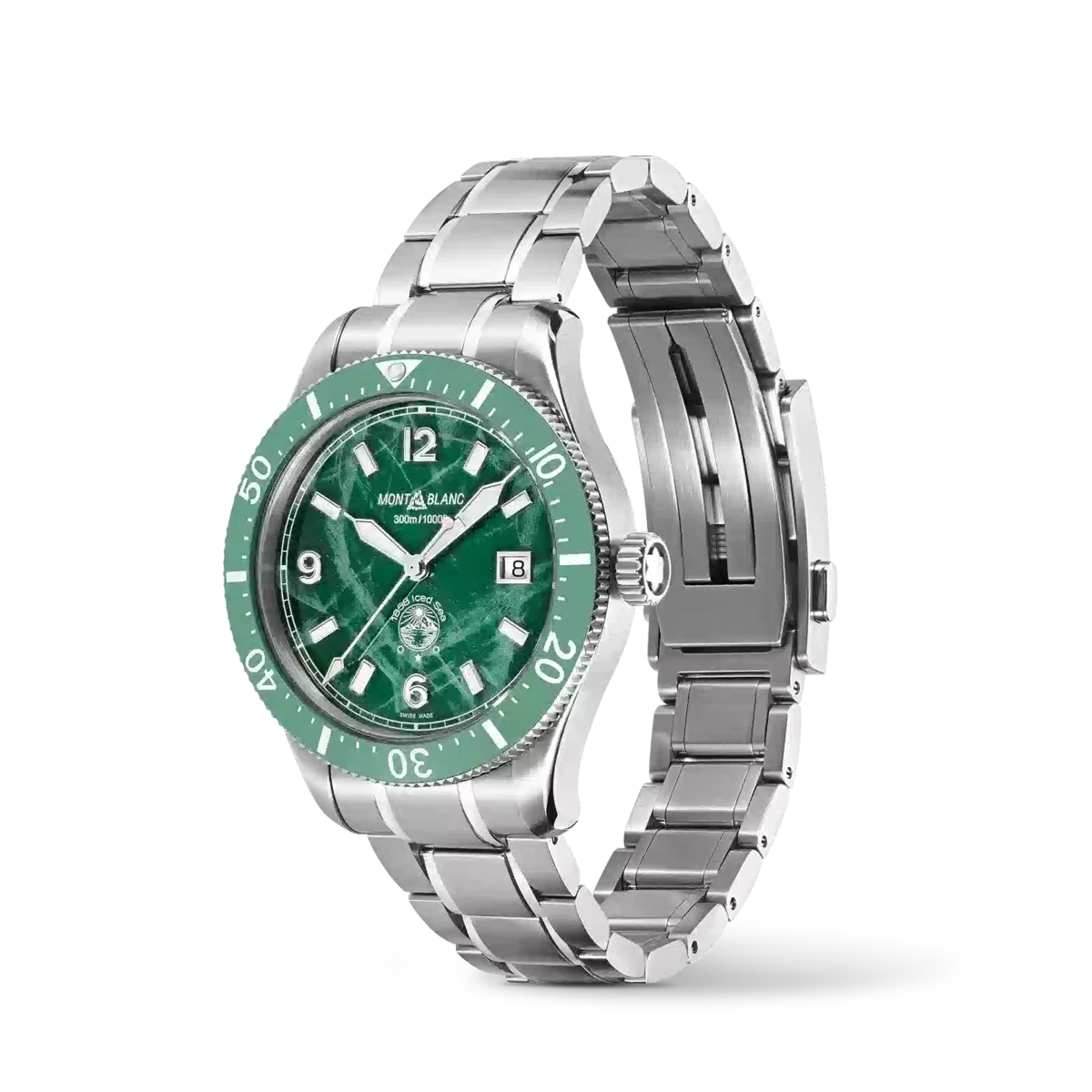 Montblanc Iced Sea Automatic Date er Montblancs første sportsdykkerur og har en urskive med gletschermønster, der giver indtryk af at kigge ned i gletscherens dyb. Den grønne urskive med gletschermønster er inspireret af Mer de Glace – Ishavet – den største gletscher i Mont Blanc-massivet. Teksturen er opnået ved hjælp af en næsten glemt, gammel teknik kaldet gratté-boisé. Uret har et 41 mm rustfrit stålhus og leveres med en ensrettet, tofarvet keramisk bezel, en graveret bagkasse og et udskifteligt rustfrit stålarmbånd med finjusteringssystem. Uret overholder ISO 6425-normen for dykkerure og er vandtæt ned til 300 meter. Identifikationsnummer: MB129373