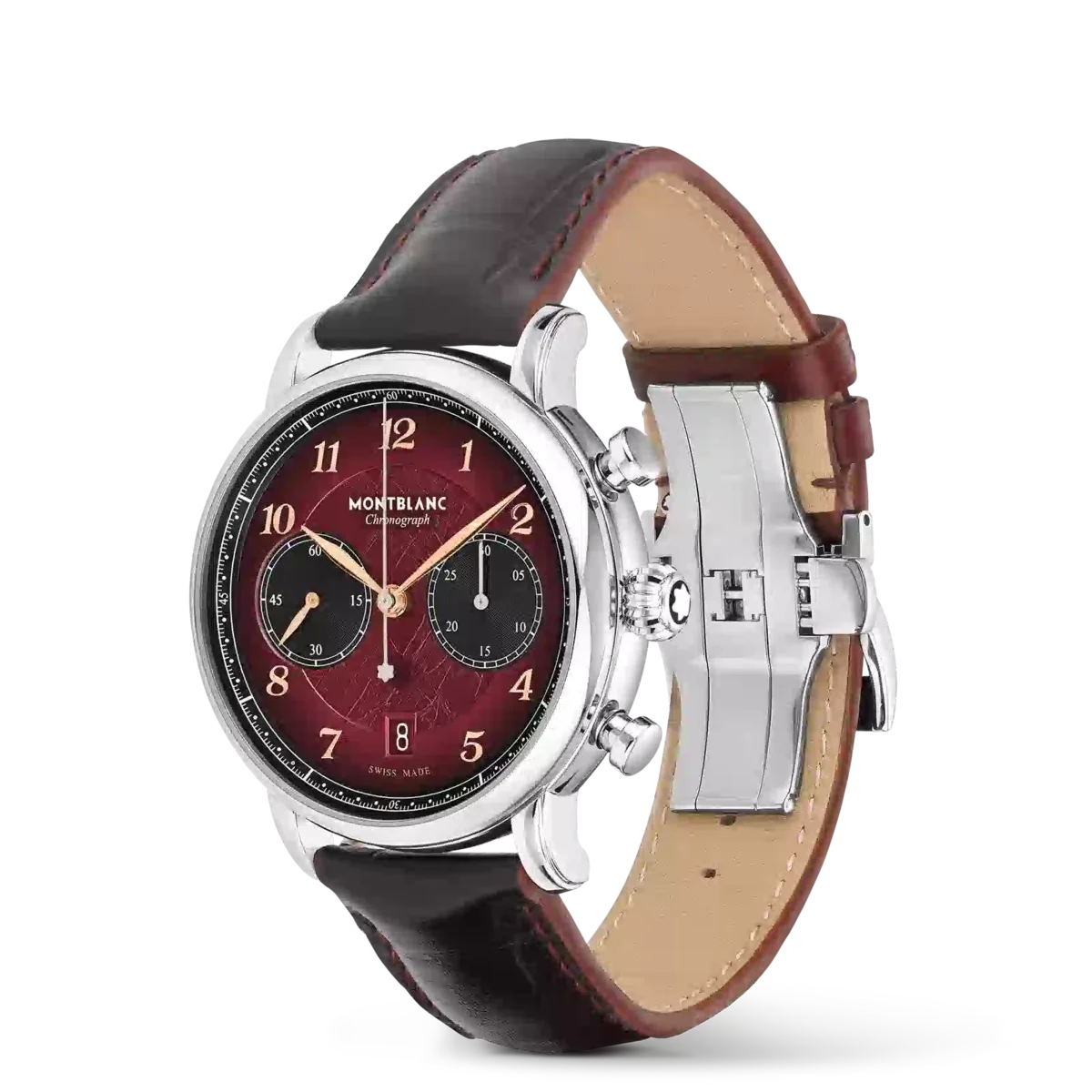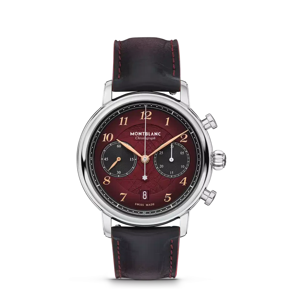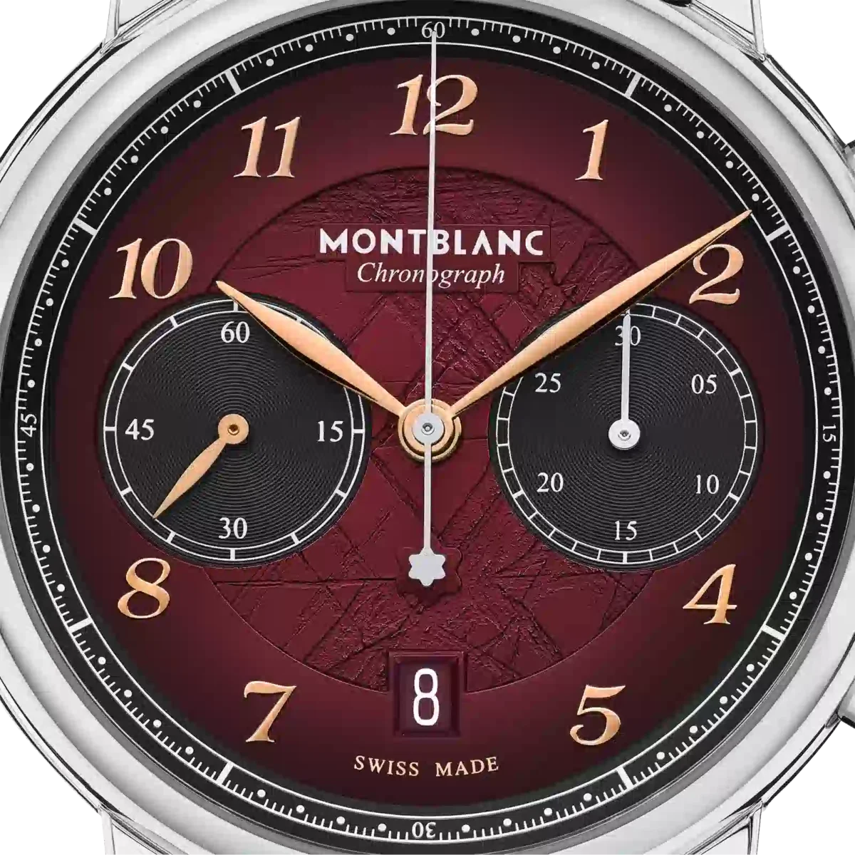 Montblanc Star Legacy Chronograph Limited Edition i 1786 eksemplarer er en hyldest til den uforfærdede Jacques Balmat, der som den første besteg Mont Blanc i 1786. Uret har en burgunderfarvet urskive med gletschermønster og sfumato-effekt langs kanten, en rack minuterie og rosaguldbelagte tal. Indikationerne omfatter en central chronograph-sekundviser med Montblanc-emblem på modvægten og en 30-minutters chronograph-tæller med rhodiumbelagte visere, mens tidsmålingsfunktionerne – timer, minutter og små sekunder – har rosaguldbelagte visere. Denne model drives af det automatiske urværk MB 25.13 og er anbragt i et 42 mm rustfrit stålhus med åben bagside på urværket. Uret leveres med en udskiftelig kalveskindrem med alligatorprint og lodret sfumato. Identifikationsnummer MB133245 Rembredde 21 mm