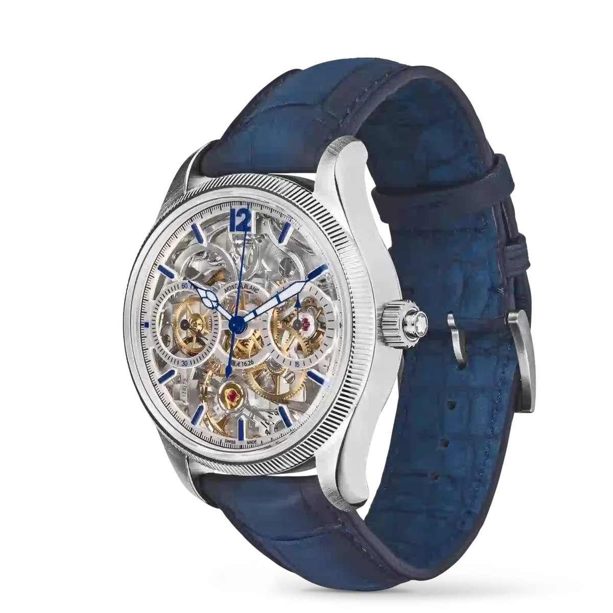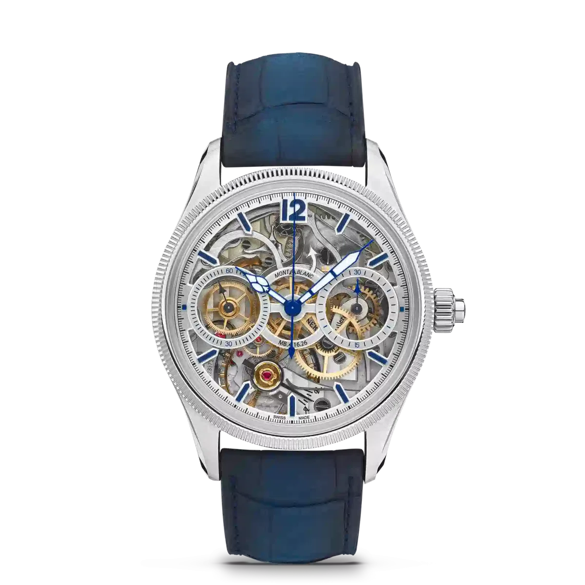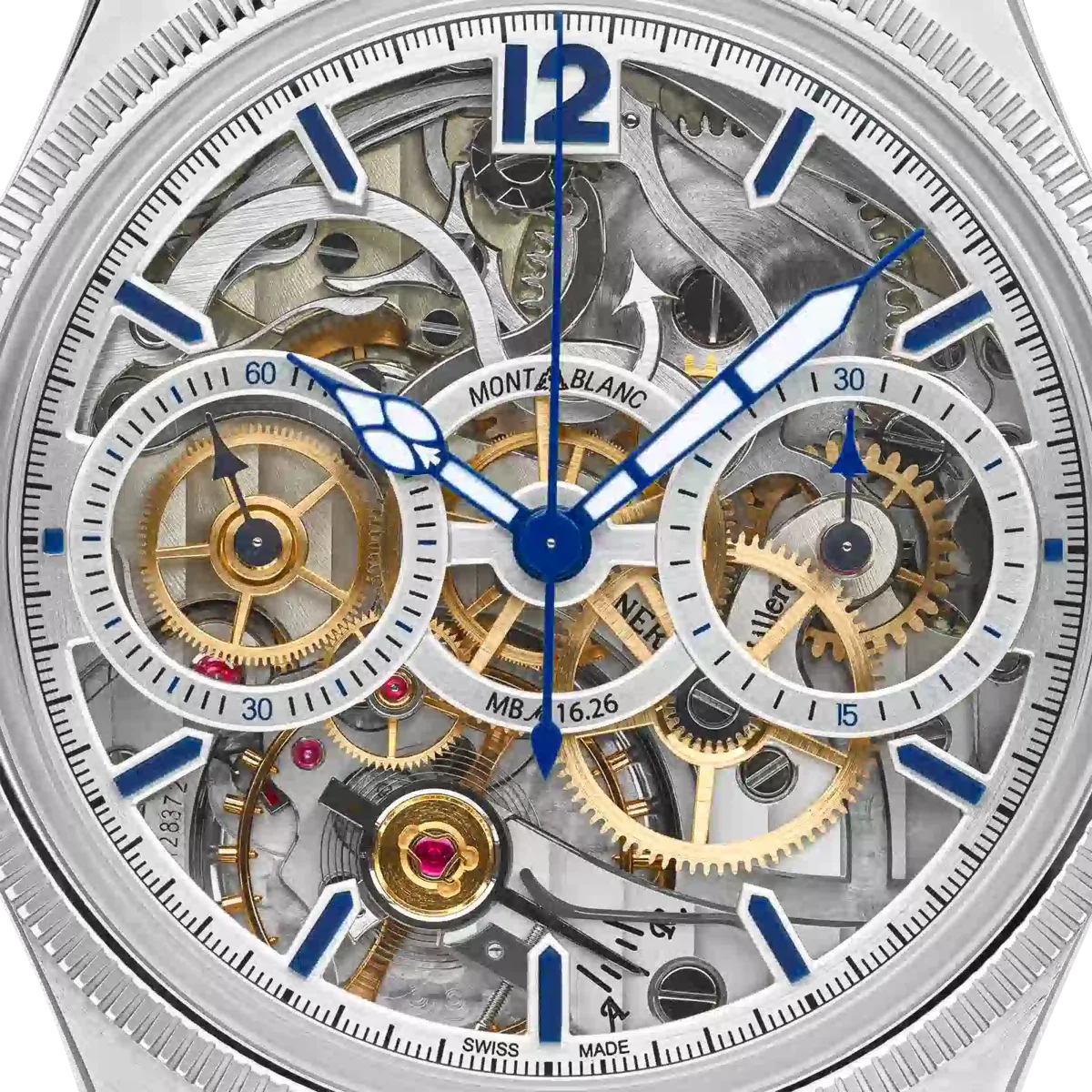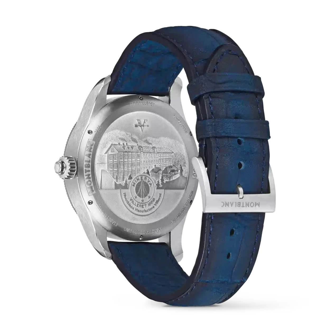 Montblanc 1858 The Unveiled Secret Minerva Monopusher Chronograph Limited Edition giver uhindret udsigt til Maison’s MB M16.29 Manufacture-kaliber, der er vendt på hovedet for at afsløre al magien i kronografværket. At vende et urværk på hovedet lyder simpelt, men det er en teknisk bedrift, da visernes retning også skal vendes. Denne limited edition på 58 eksemplarer kommer i en 43 mm rustfri stålkasse med en riflet bezel i hvidguld 750/1000 (18 karat) og har blå visere og indekser samt en blå alligatorlæderrem.
