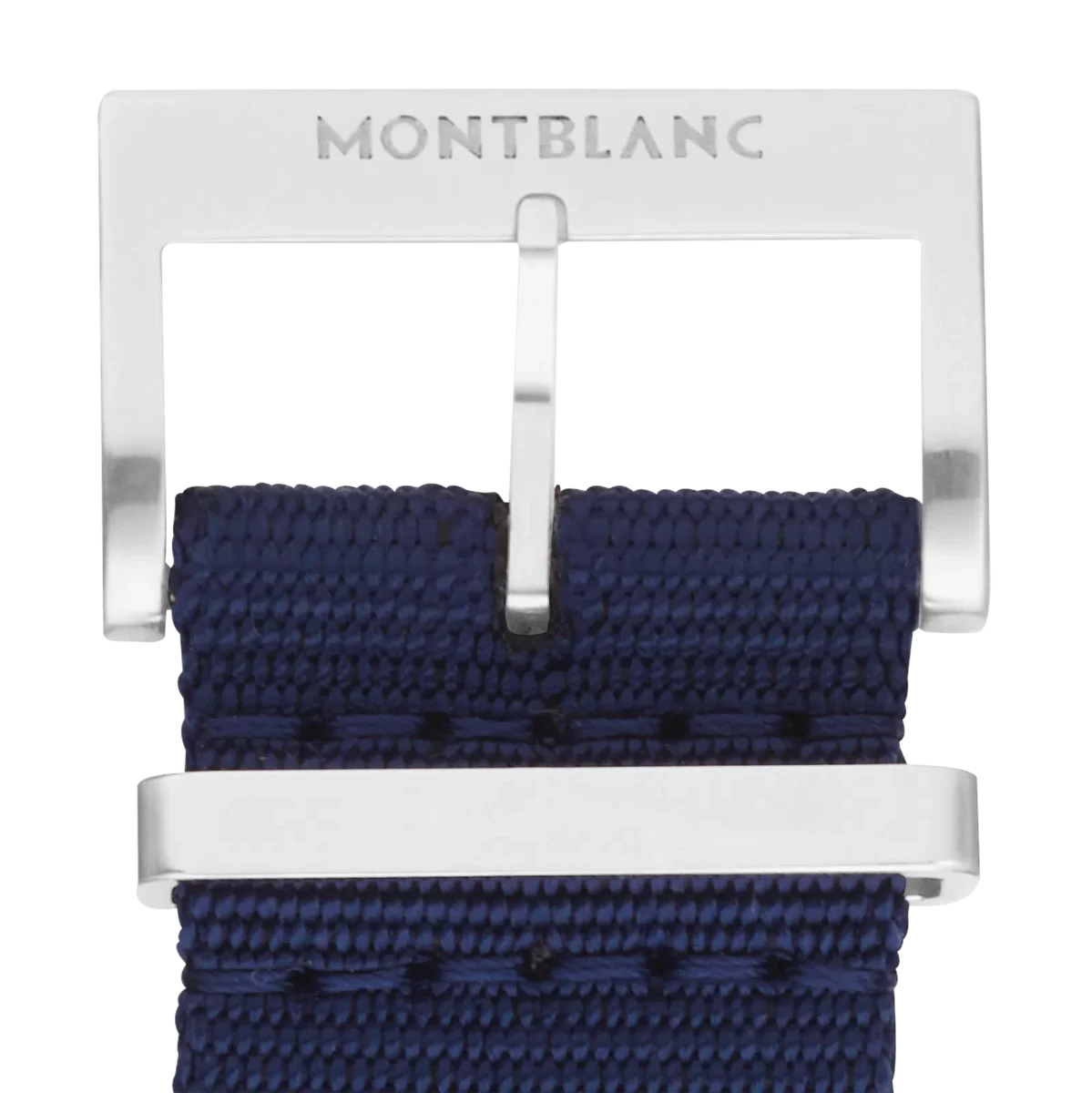 22 mm blå nylonrem med spænde i rustfrit stål, kompatibel med alle Montblanc Summit-smartwatches.
